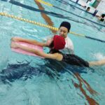 9月26日、30日に青垣グリーンベルにてプール学習を実施しました。生単の時間に実施した水遊びのプールとは違い、大きなプールでの学習に子どもたちの楽しそうな声や表情がいつも以上に多く見られました。楽しみながらも、バタ足の練習や水に浮く感覚を楽しんだり、水の中で様々な歩き方や運動をしたりと学習にも取り組みました。