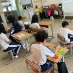 集団学習では、手遊び歌、絵本の読み聞かせ、算数・国語の学習をしています。みんなの前で発表することに慣れ、堂々と発表できることも増えてきました。個別学習では、個々の課題をそれぞれの先生に教えてもらいながらがんばっています。