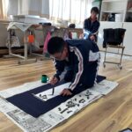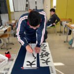 1月9日に新春書初め大会を行いました。慣れない毛筆を使って書くことに戸惑っている様子も伺えましたが、事前学習で学んだ、筆を立てるやゆっくり筆を動かすなど意識して取り組むことができていました。社会コースは「奥の細道」、生活コースは「生きているって・・・」の一部をそれぞれが担当して書きあげました。出来上がったものを貼り合わせて共同作品として廊下に展示しています。ご来校の際はぜひご覧ください。
