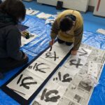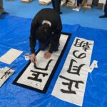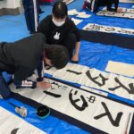 1月14日(水)に中学部新春書初め大会を行いました。はじめに書き初めが1200年前(平安時代)に始まった話などを聞いたり、教師の模範演技を見て大きな字で元気よく書くことの大切さを確認したりしました。その後、自分たちが選んだ文字を画仙紙いっぱい使って書きました。大きな筆で書くことに慣れていない生徒も、教師に見守られながら失敗を恐れず書くことができました。春の海のバックミュージックを聞きながら、静かに集中して取り組む姿が見られました。日本文化に触れる良い機会になったと思います。