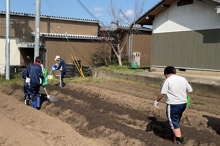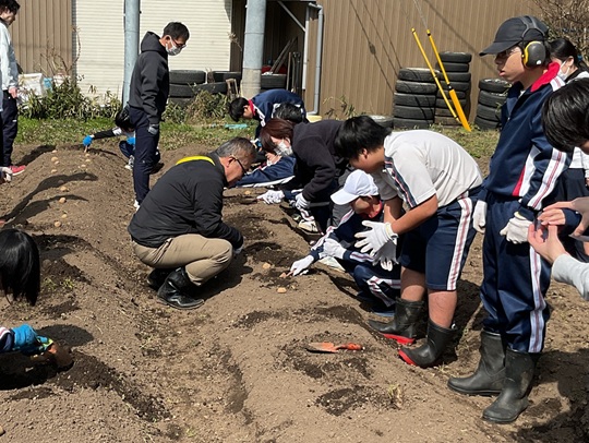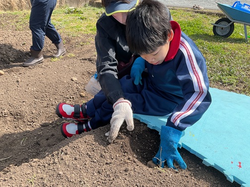 1.2年生でジャガイモの植え付け作業をしました。