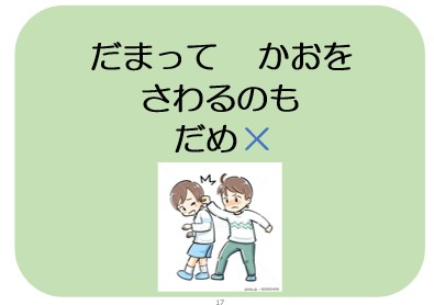 12月9日(火)3時間目に、各クラスに分かれて授業を行いました。今回は、「いのちの安全教育」(子どもたちを性犯罪・性暴力の加害者・被害者・傍観者にしないことを大きな目的とする)を見据えた内容で、「危険な場面」に遭遇した場合、どうするかを考え実践しました。