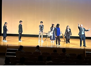 全県から参加した18チームそれぞれが工夫を凝らし、10分間に笑いと衝撃を盛り込んだ小劇を競う熱い戦いの結果、本校の☆O☆SU☆SHI☆チームが5位に入賞し、優良賞を獲得しました。