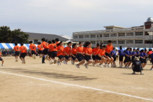 10月2日(木)爽やかな秋晴れの下、体育大会が行われました。今年の体育大会は数年ぶりに本校グラウンドで1日開催となりました。