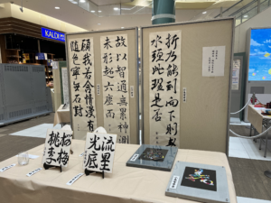 イオンモール姫路大津の1階オアシスコートにて芸術部(書道)の作品が展示されています。