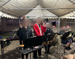 大津小学校PTA様より依頼を頂き、クリスマスのイルミネーションイベントで演奏させていただきました。屋外での煌びやかなイルミネーションの中、Xmas Swingin’コレクションや、銀河鉄道999、嵐メドレーなどを披露しました。寒空の中でしたが、たくさんの方に聞いていただき、地域のイベントに貢献できて生徒にとって経験となりました。ありがとうございました。次回の本番は12月26日(金)に開かれる兵庫県アンサンブルコンテスト西播地区大会となります。金賞、県大会出場を目指して日々の練習を引き続き頑張っていきます。