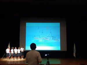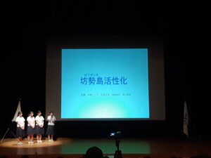 内 容:2年生普通科の「坊勢島の活性化」について探究をしている2チームが、グローバルリーダー育成事業に参加しました。VRゴーグルと有名なロールプレイングゲームを組み合わせて、坊勢島の散策を楽しむアイデアを提案するチームと、「eスクーター」と2025年大阪万博で披露されるという「空飛ぶ車」というモビリティに着目して、坊勢島に来ることを楽しんでもらうことを提案するチームで、それぞれに考えたアイデアを会場に集まった他校生や大人の方々に聞いていただきました。8月6日(日)に姫路商工会議所で8分間で発表した内容を、4分間に短縮して発表しました。