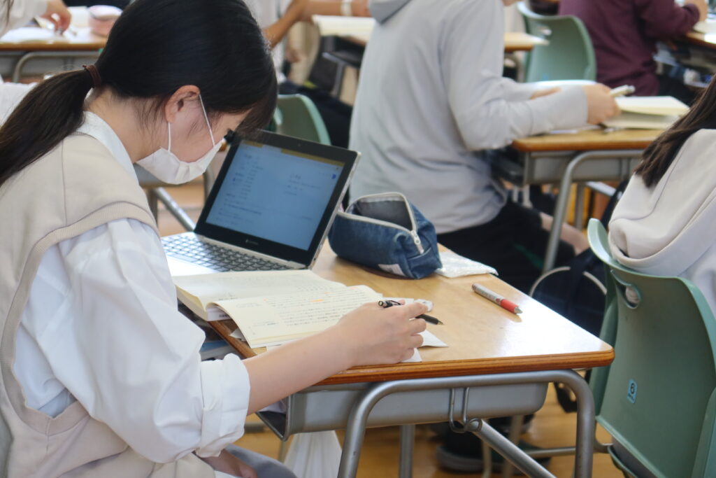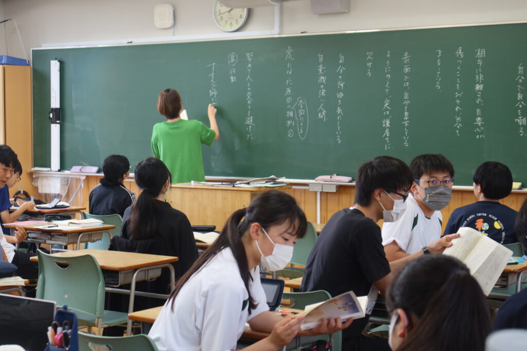 2024年 今日の西高 国語の授業風景 国語の授業風景 2024_06/28 本日は国語の授業の様子です。 2年国際理学科の生徒が教室で授業を受けています。 近くの生徒と話し合いながら、積極的に授業に参加していました。