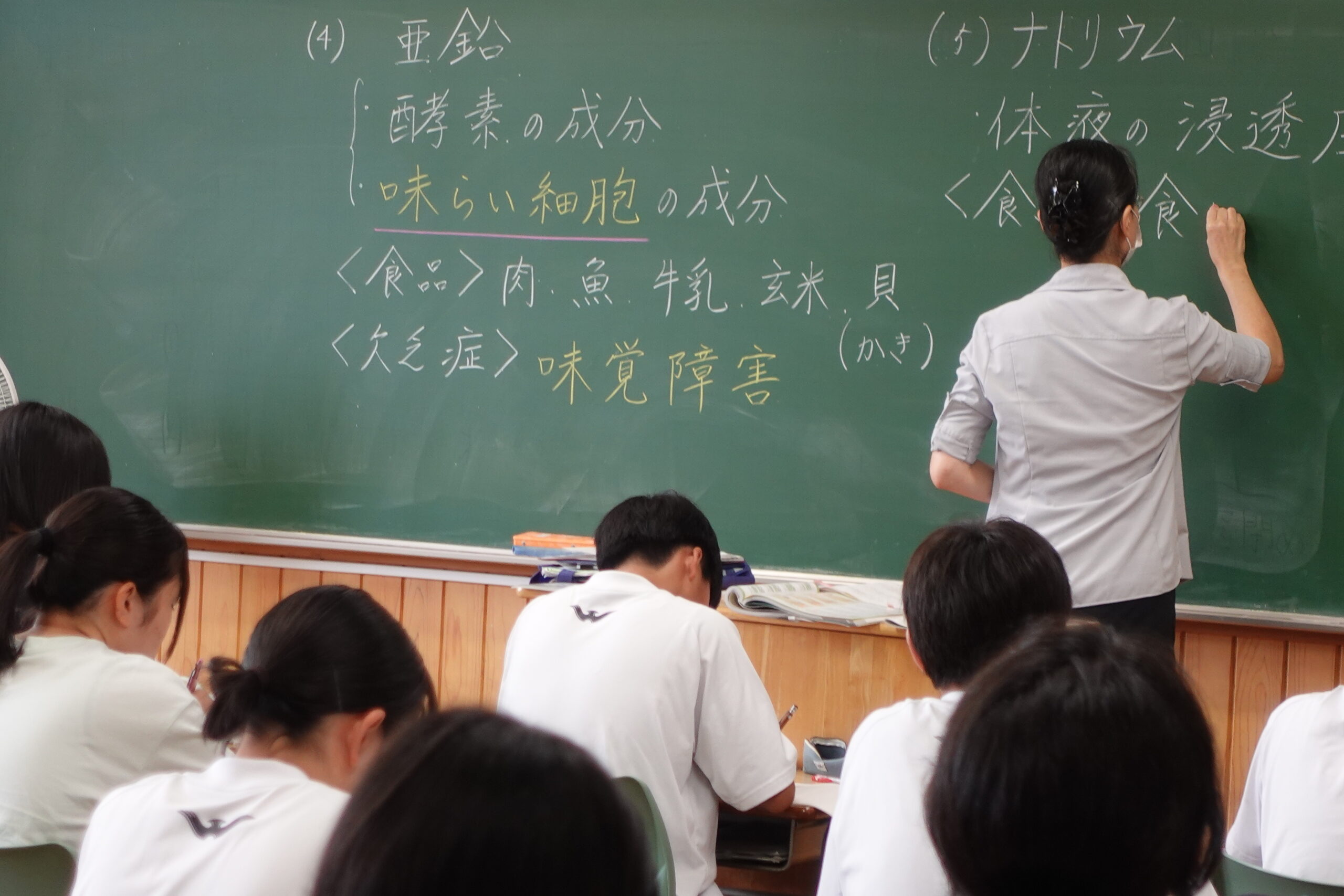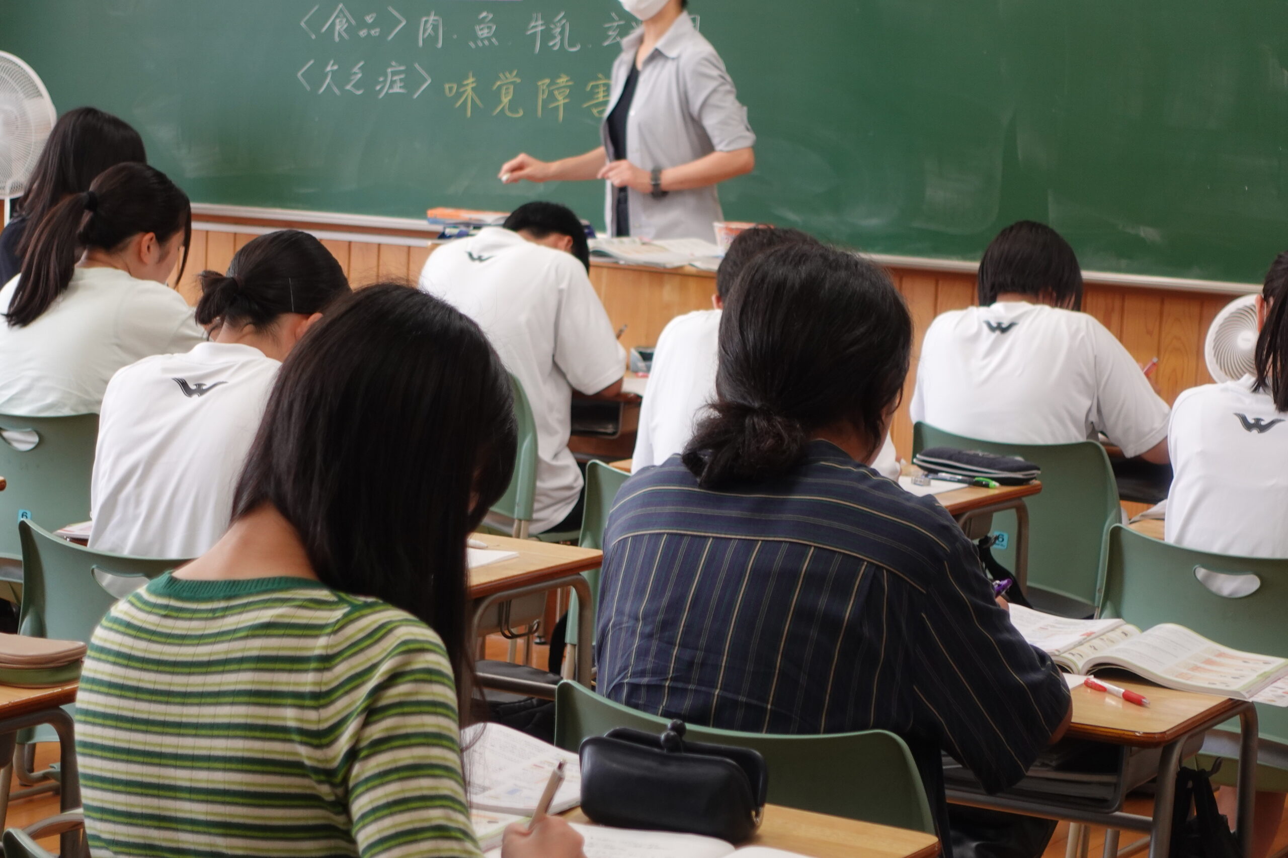 2024年 今日の西高 家庭科基礎の授業 家庭科基礎の授業風景 2024_07/16 本日は家庭科基礎の授業風景です。 78回生(2年生)の生徒がホームルーム教室で授業を受けています。 また、本日から午前授業が始まりました。 45分授業になるので、短い時間で集中して授業に取り組みましょう。