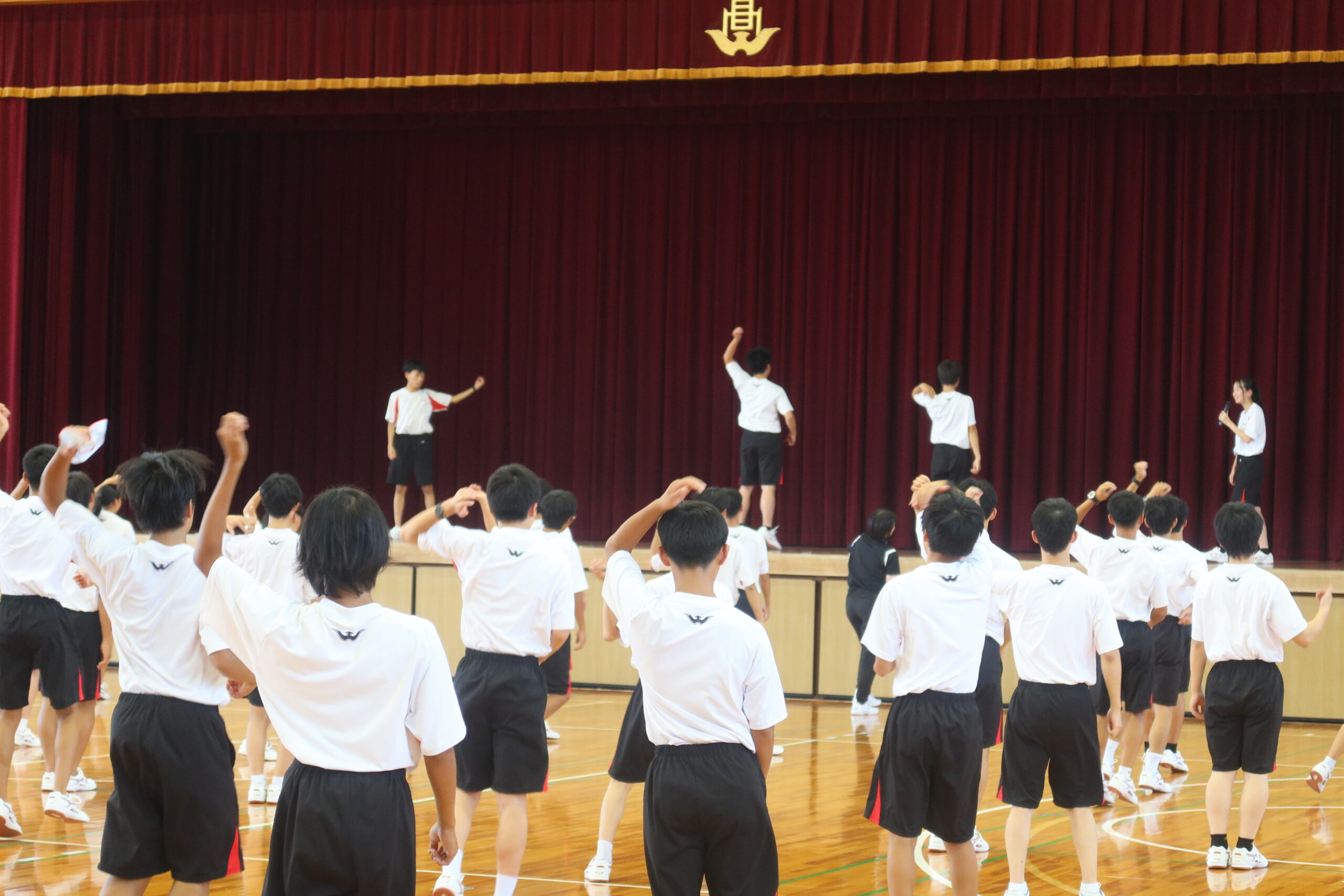 2024年 今日の西高 体育の授業 体育の授業 2024_09/06 本日は1年生が体育館で、体育大会にむけて応援練習をしていました。 前で生徒がマイクをもってほかの生徒に指示を出して、振り付けの指導を行いました。 初めての体育大会、先輩に負けない応援になるように頑張りましょう。