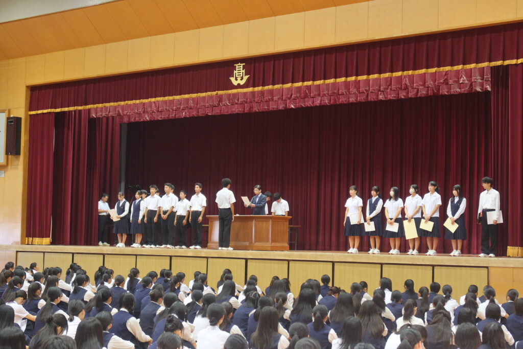 2024年 今日の西高 後期始業式・表彰伝達 後期始業式・表彰伝達 2024_10/01 本日は後期始業式と表彰伝達が行われました。 表彰伝達の後には壮行会が行われ、これから大会に挑む部活動へ応援団がエールを送りました。