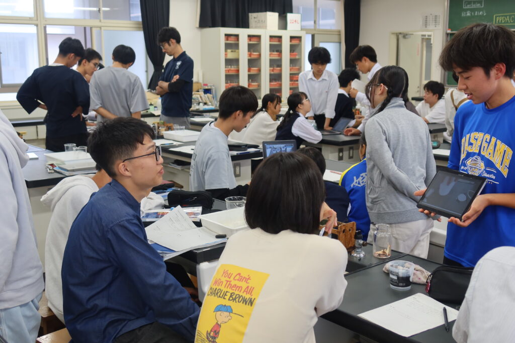今回の基礎実験講座は、今後の探究活動をする上でのテーマ設定のきっかけづくりの一つになったと思います。また、他者のプレゼンを聞き、それをふまえて班で議論・修正していくことで、多角的な視点で考察を進めることが出来ました。