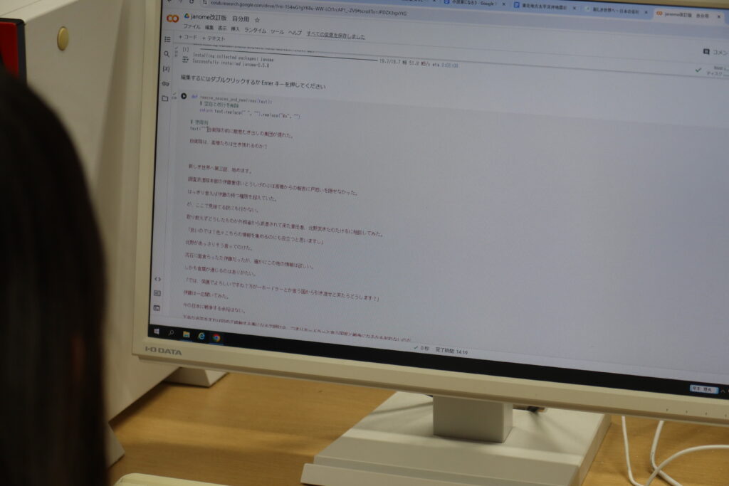 探究活動を成果をまとめていくにあたり、各教室に分かれて実験、データ分析、考察、まとめなどそれぞれの活動を行いました。以前の実験の結果を踏まえて、担当の先生に指摘された内容を考察、再度実験を行いその結果をもとに再度考察を進めるチームもありました。図書館に資料を探しに行くチームもあり、インターネット以外からもデータを集め課題研究を深めていきます。