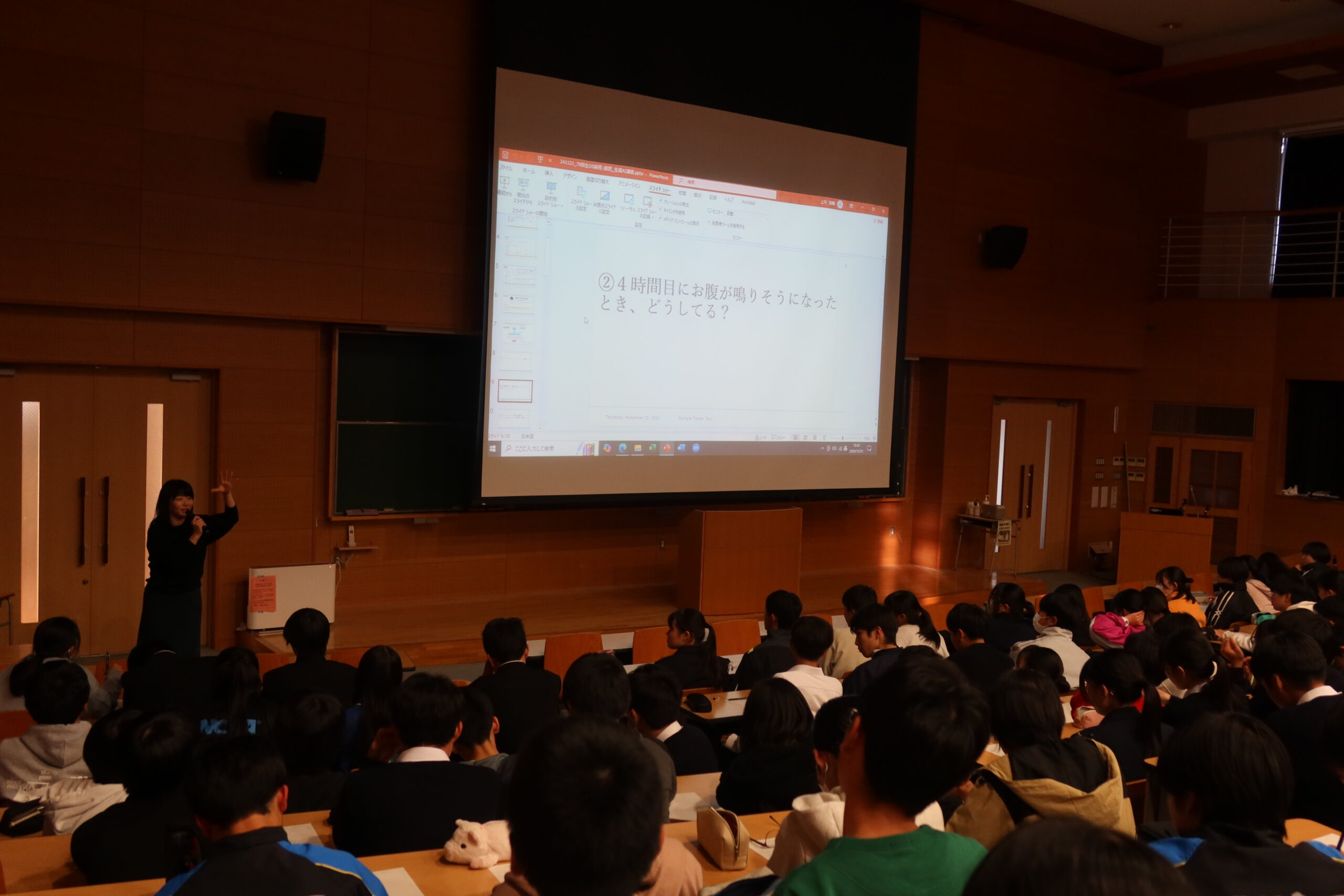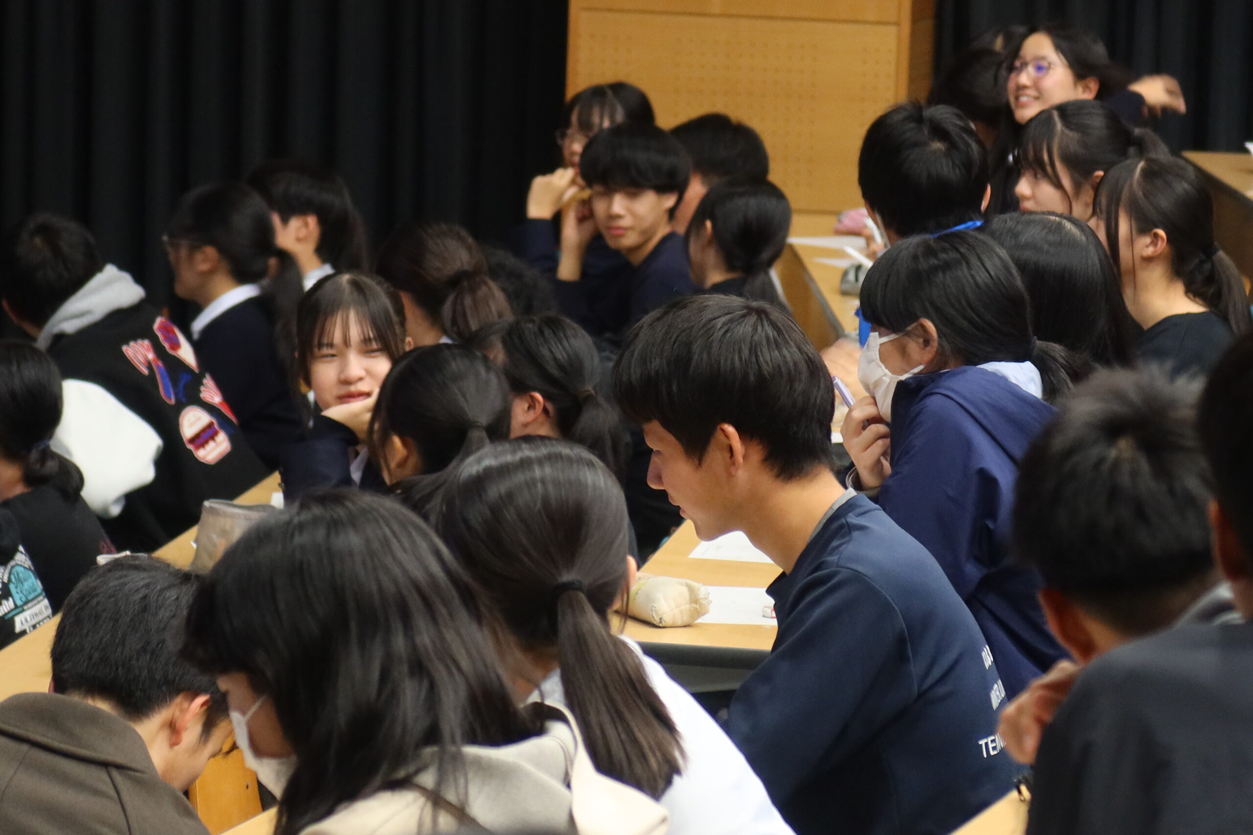 大講義室で、生成AIの仕組み、付き合い方、注意事項について近くの人とペアワークを行いながら講座を進めていきました。何も知らない状態で触れるには非常に恐ろしいものですが、今回の講座を通して危険性や注意点、簡単な仕組みについて新しく学んだことが多くあると思います。