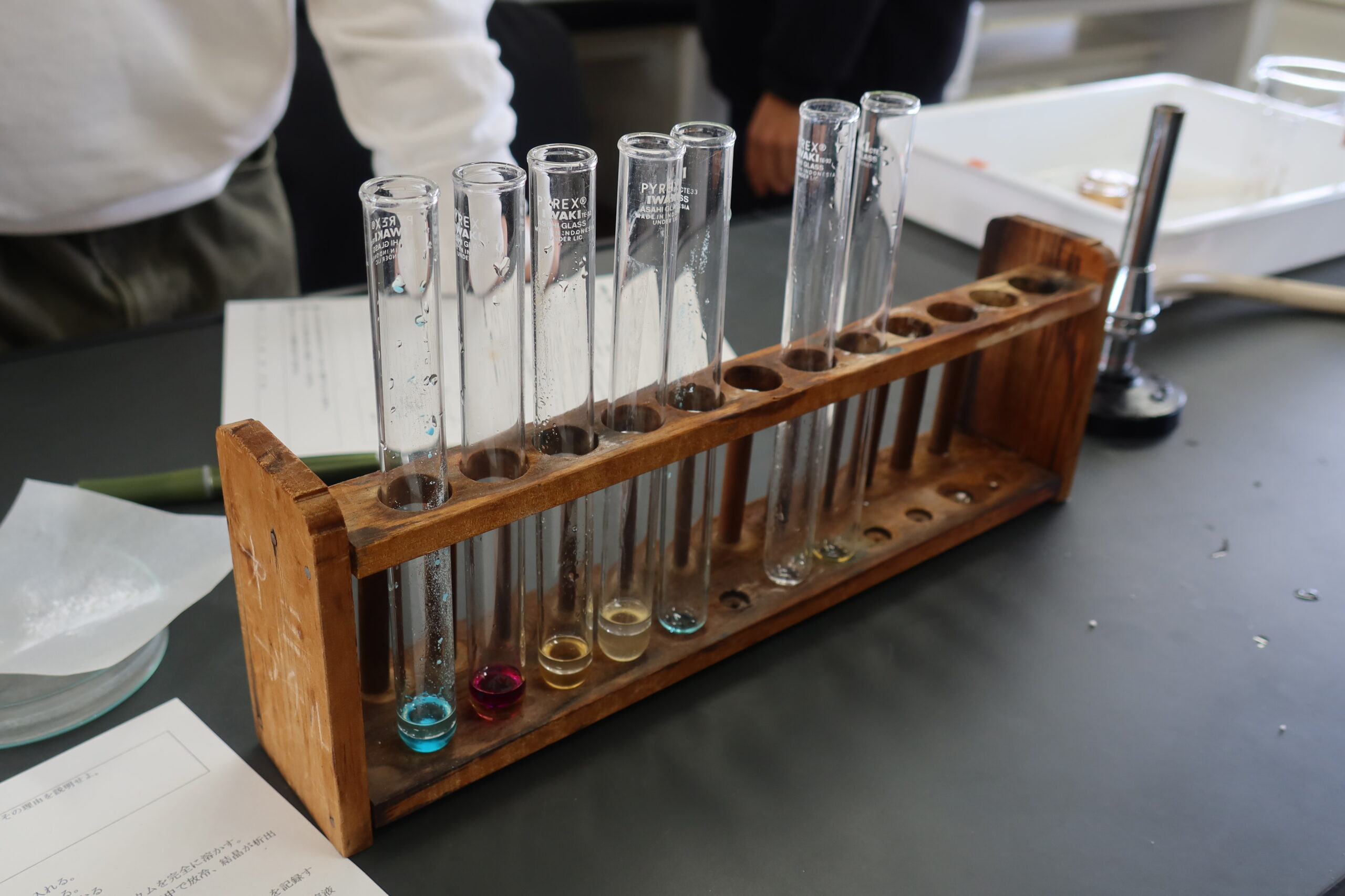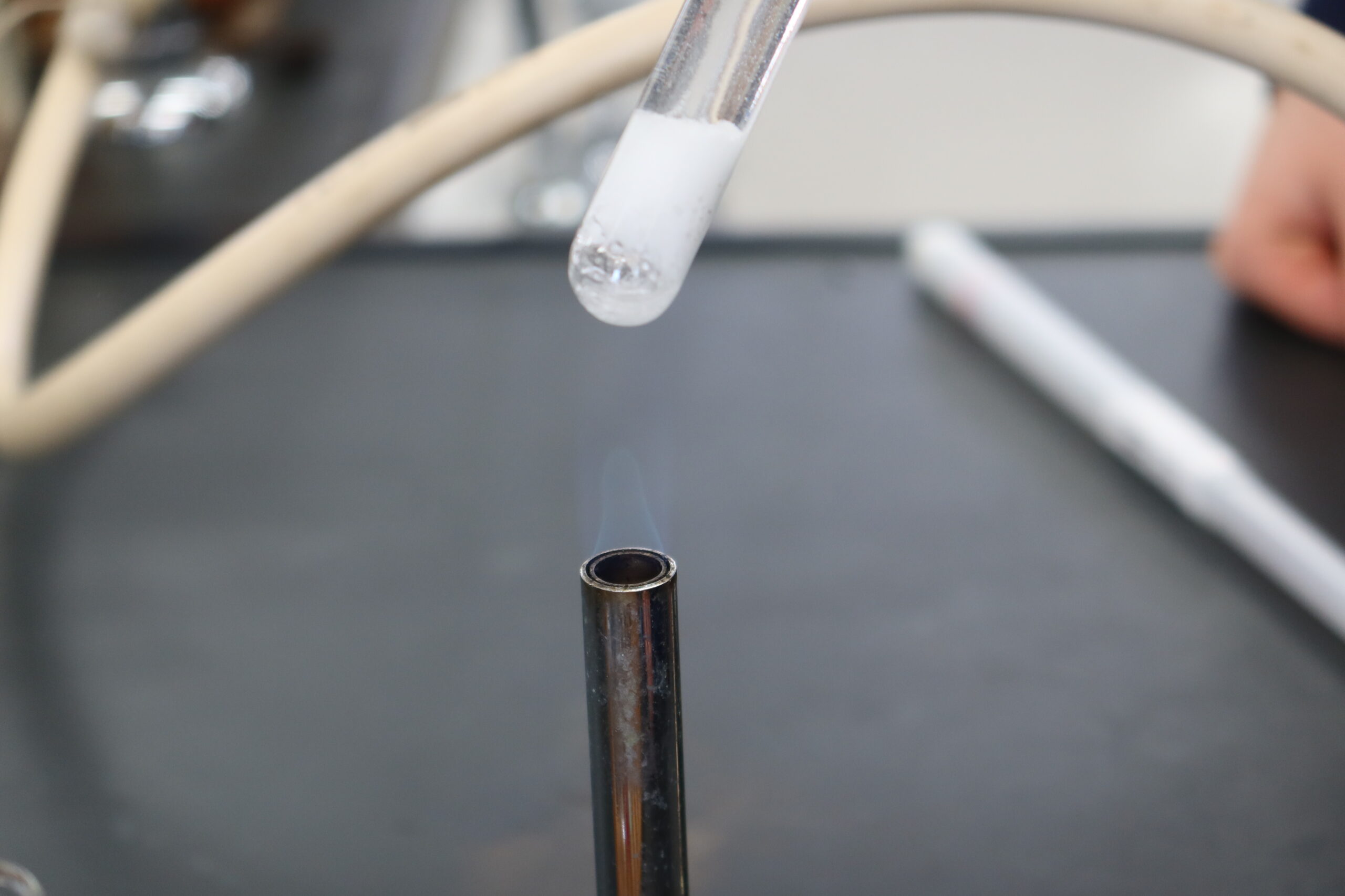 また、塩化アンモニウムの溶解度を確認する実験では、試験管で塩化アンモニウムと純水をガスバーナーを用いて溶かし、その後冷やすことで塩化アンモニウムの結晶を作りました。