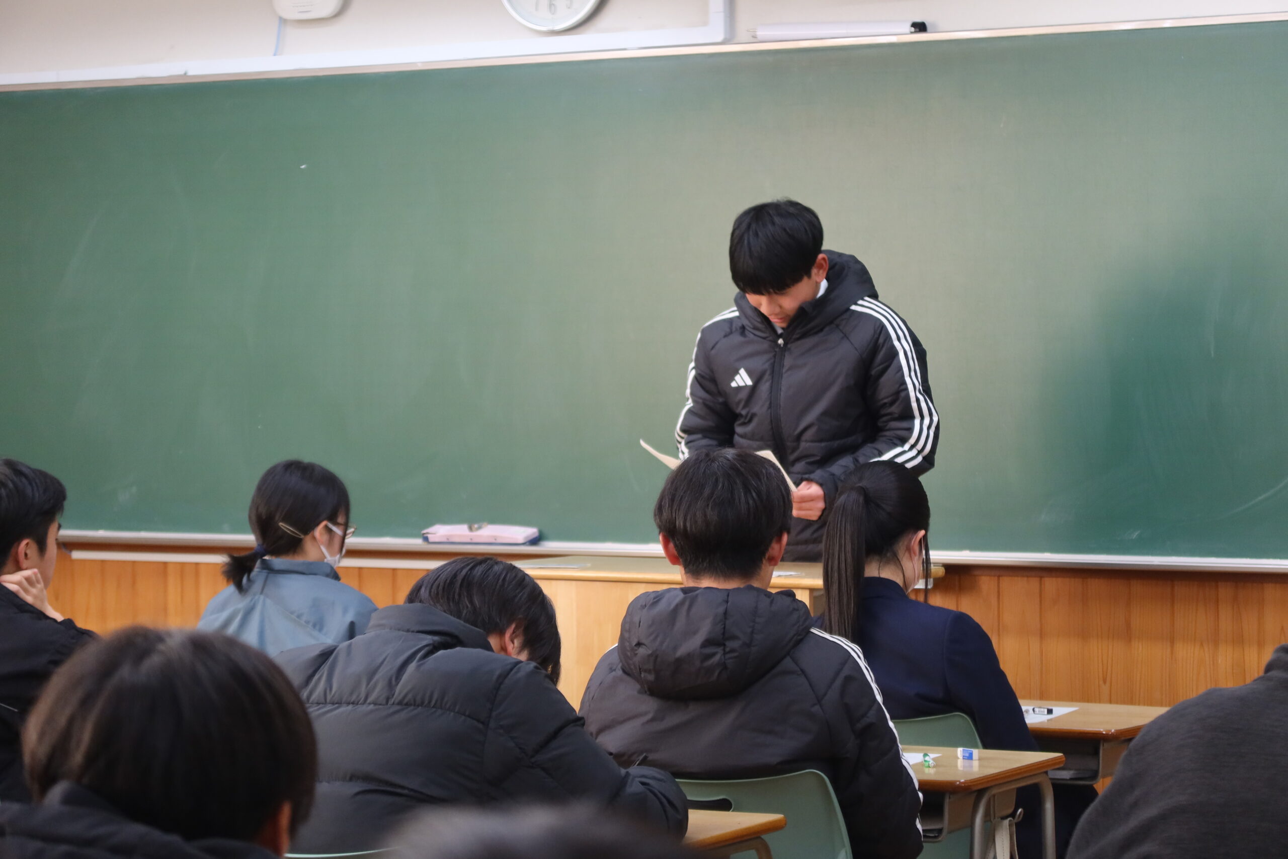 1月16日(木)に1.2年生の各教室でスピーチコンテストの予選が行われました。