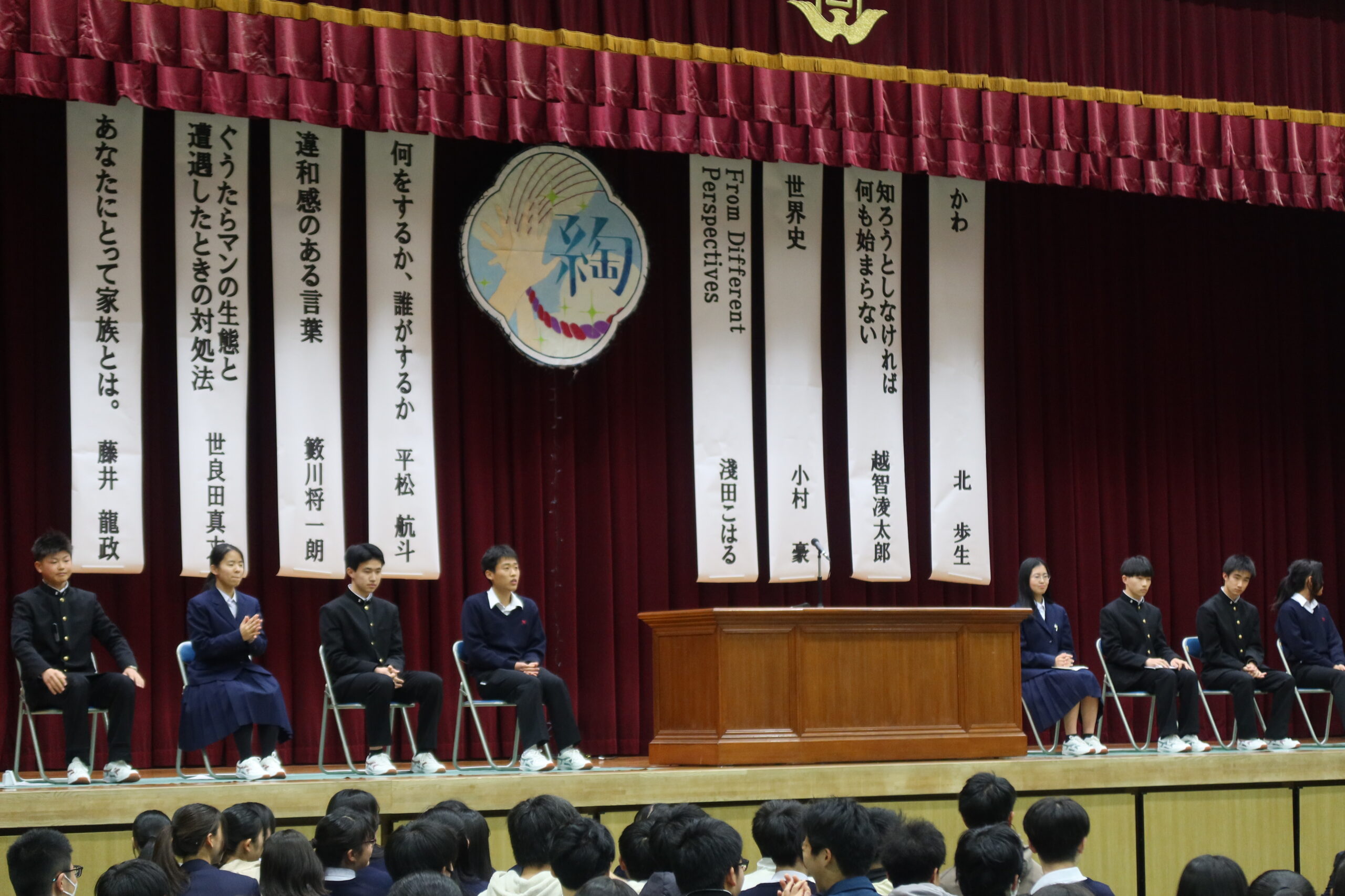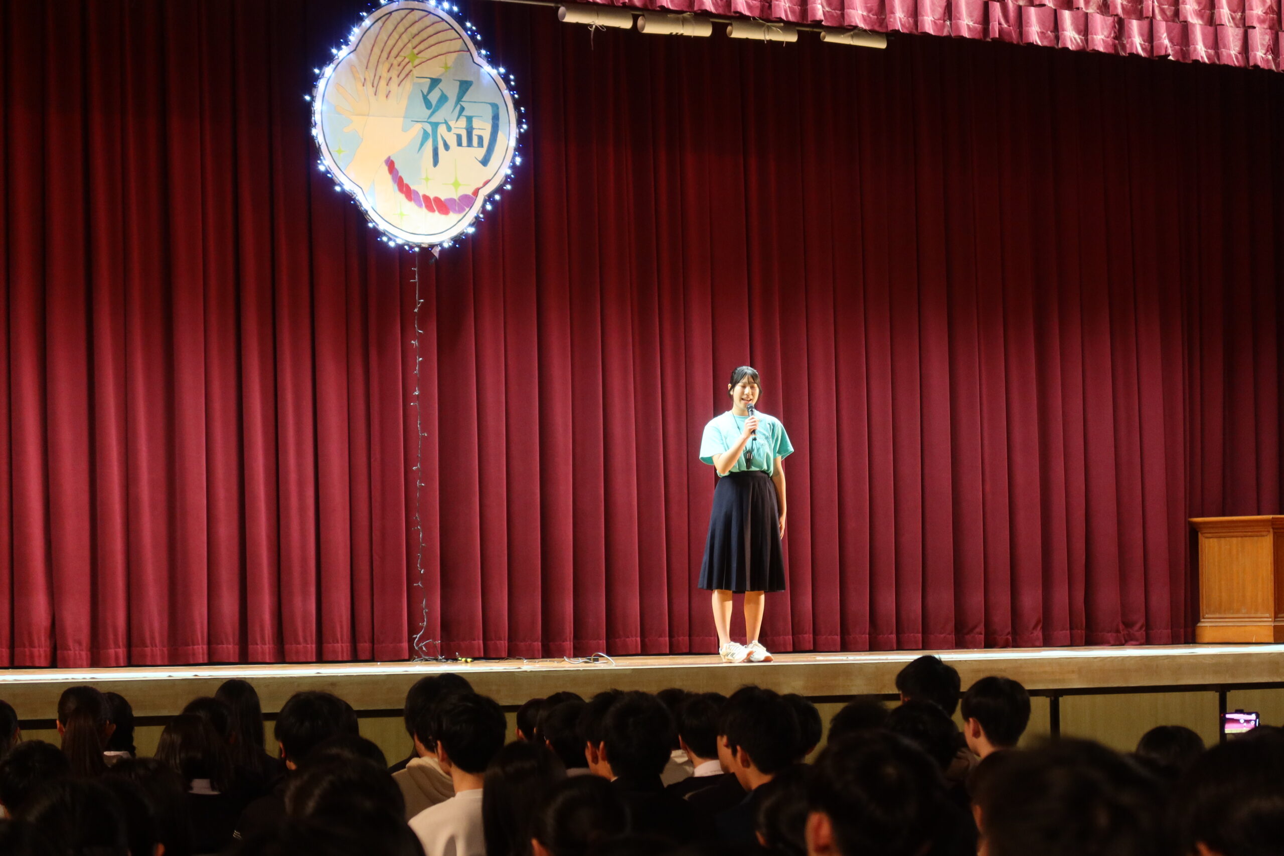 体育館ではオープニング、予選を勝ち抜いた生徒たちによるスピーチコンテスト、オーディションで選ばれたメンバーによるミニフェスが行われました。