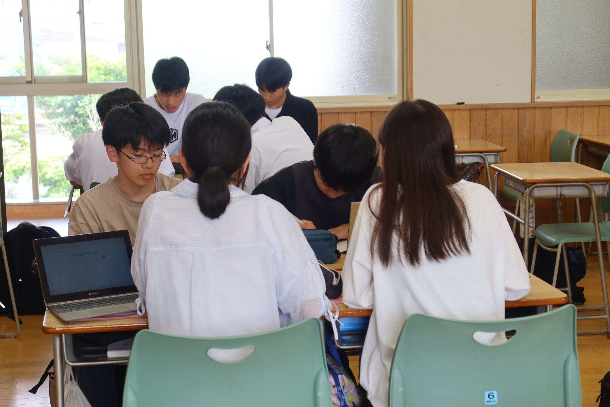 計画書の入力を進めていく中で、「研究目的・意義」や「研究方法」など各項目についてチームでよく話し合い探究活動の方向性を共有しました。