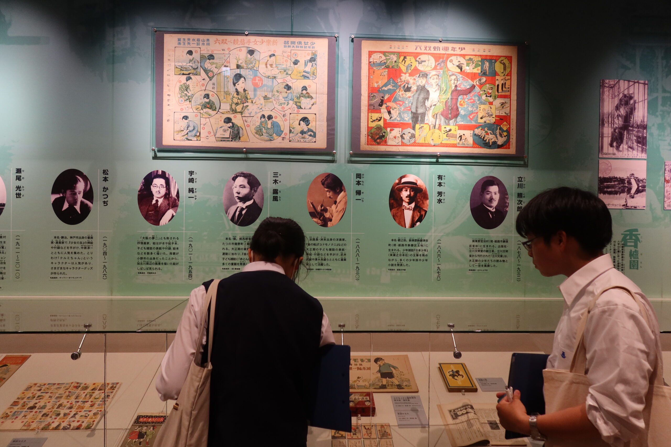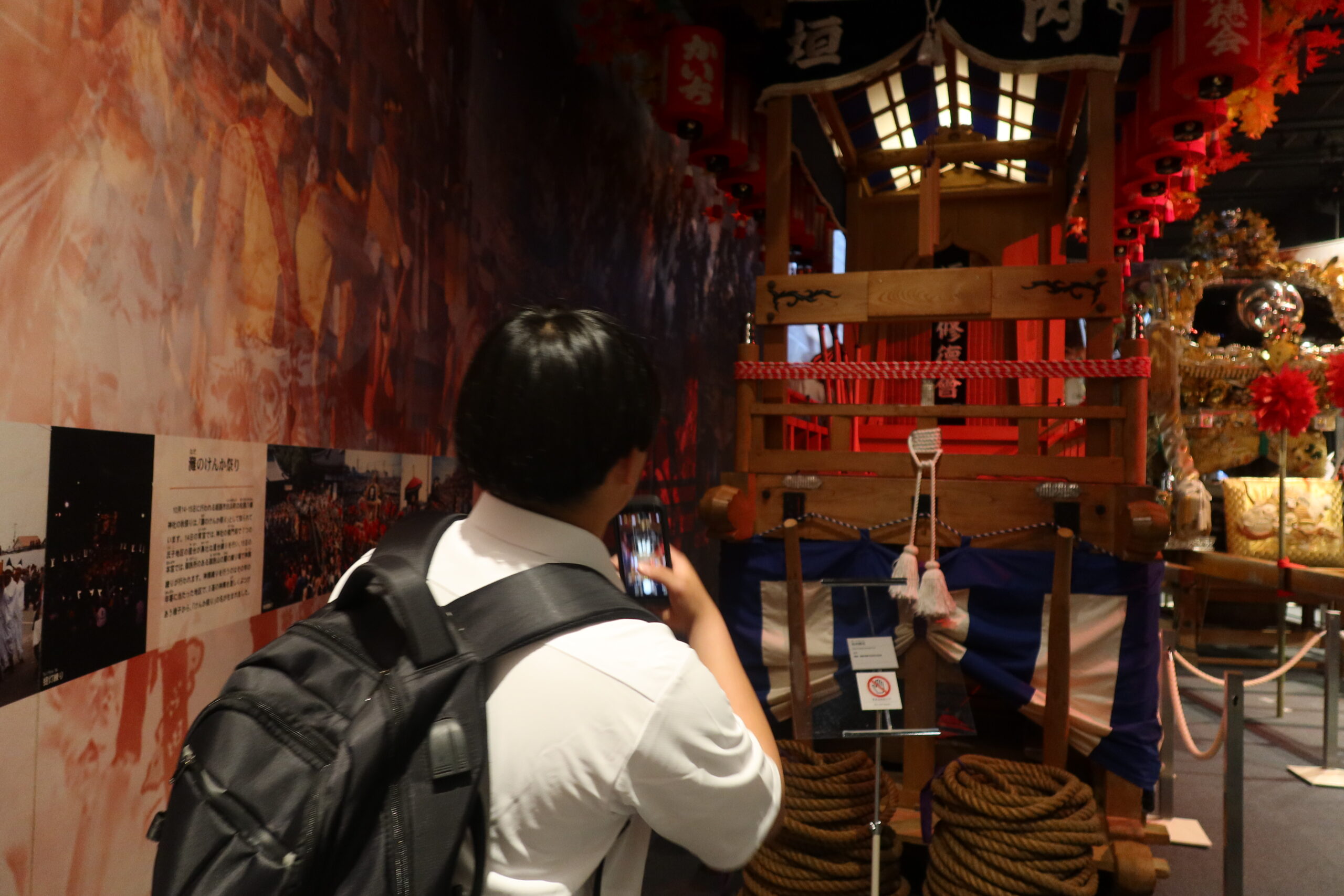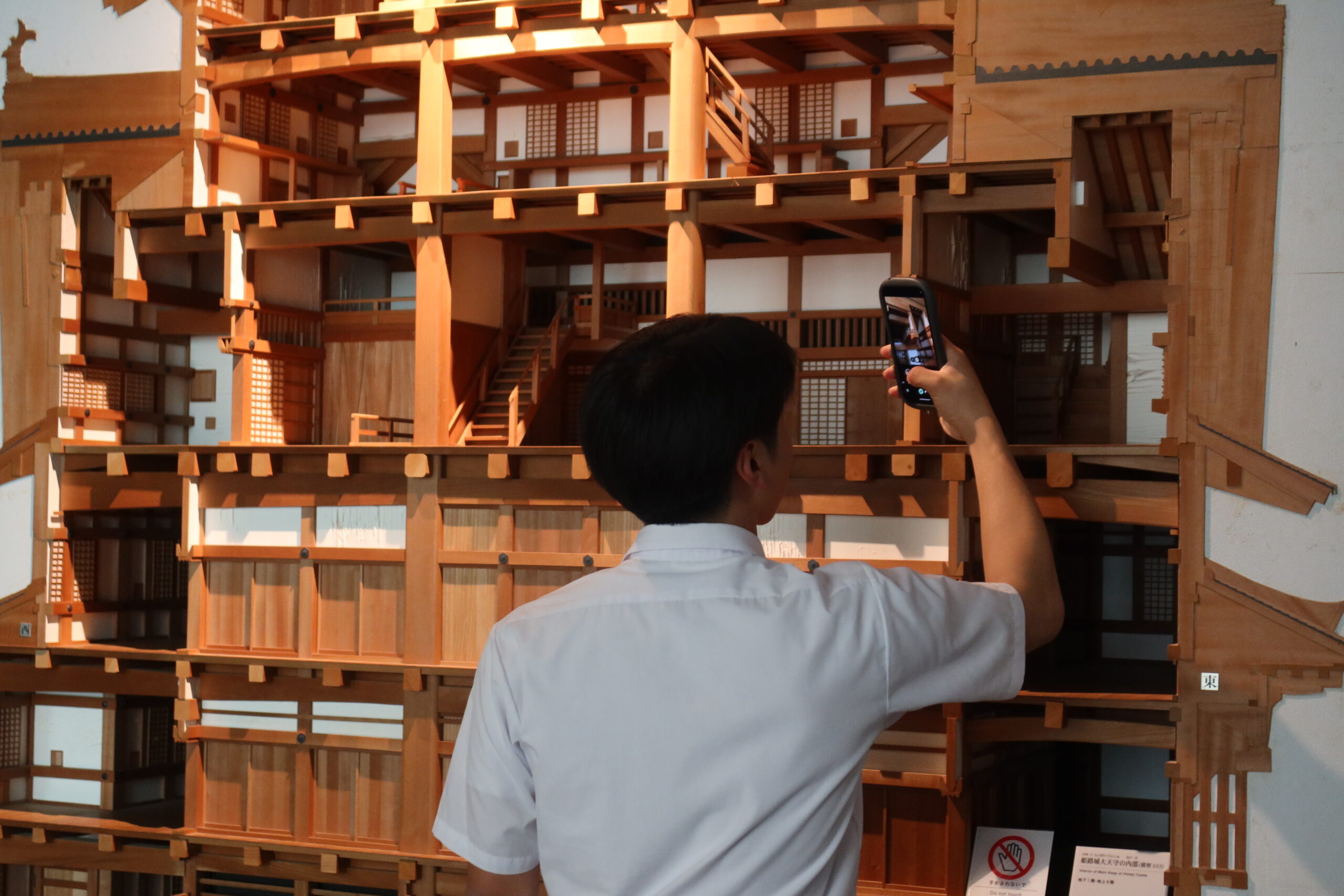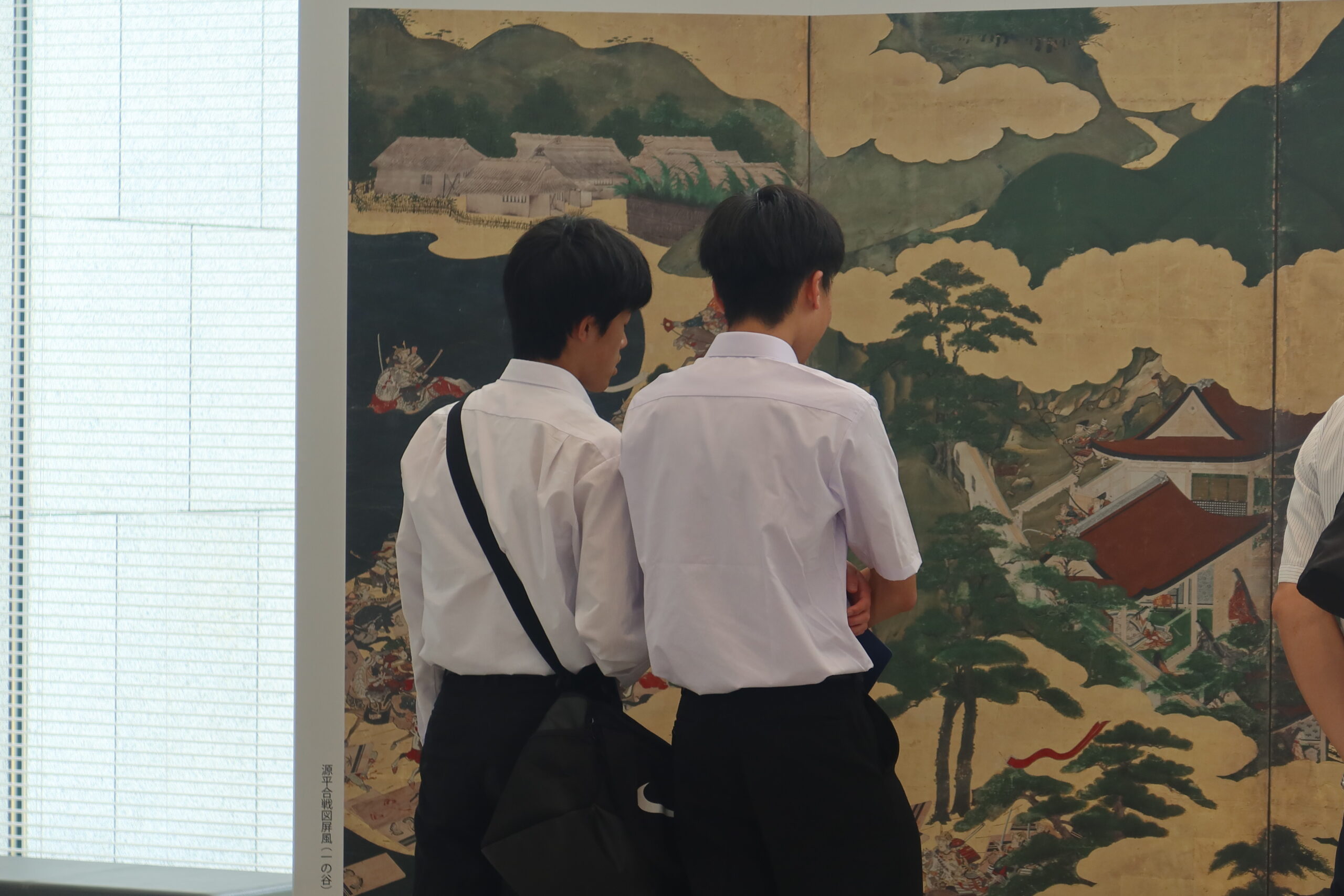 特に、現在の特別展「いくさ物語の絵画」や、常設展示の「現存12天守」と徳川家光によって建設された「寛永度江戸城天守(3代目)」をすべて1/50スケールで再現された「日本の城大百科」には、多くの生徒が集まり、思い思い感じることや、歴史の知識を共有しながら観察をしていました。「ひょうごの祭り」では地元の祭りの文化を紹介し合ったり、「みんなの家」では昔の遊びを体験したり、「美術とくらし」では昔の電話や洗濯機といった生活道具を観察したりと、展示物に興味深く向き合っていました。今日は、どのような「探検記録」が仕上がるのかを楽しみにしています。
