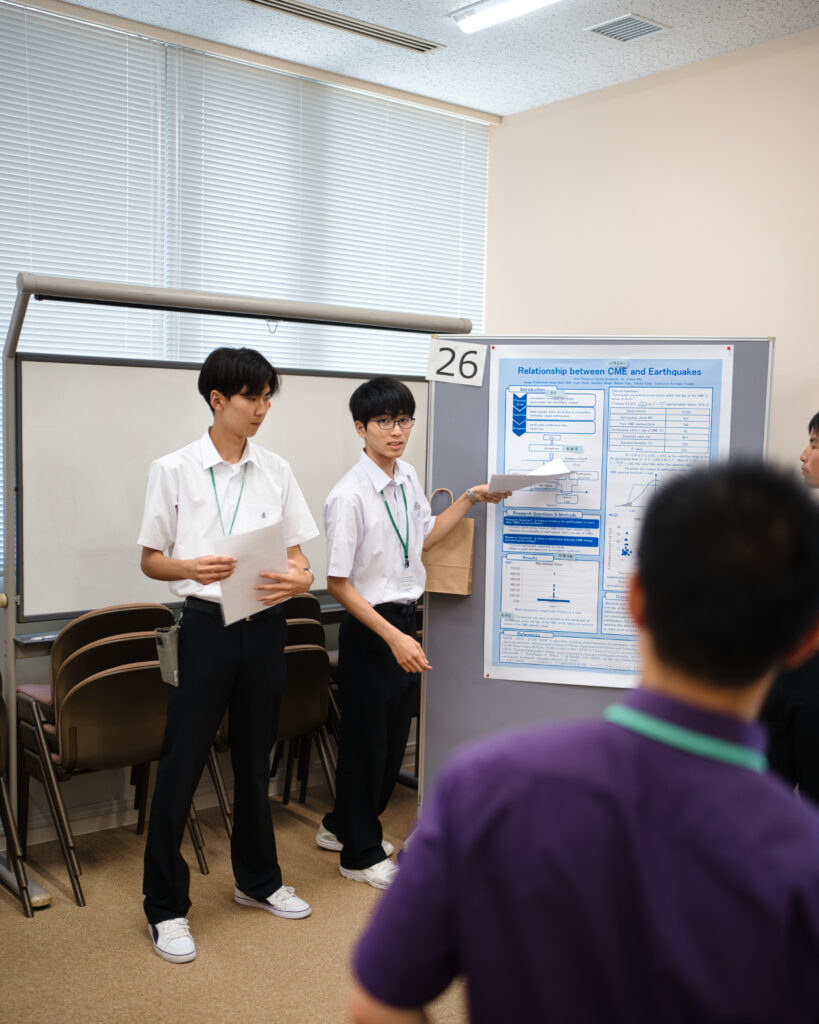 3年国際理学科の地震予測研究グループが、第11回サイエンスカンファレンス in 兵庫に参加しました。この会では、兵庫県下のSSH校から研究グループが集まり、英語による研究発表および質疑応答を行います。各校から英語の教員やALTが集まるので、英語による本格的な意見交換がなされます。今回発表した生徒たちはSSH成果発表会でステージ発表した研究グループということもあり、堂々と発表していました。