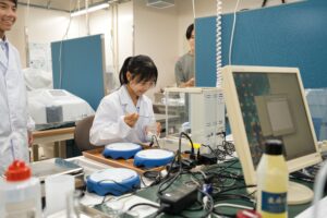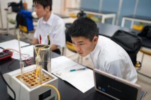 これは探究に関する授業「研究ラボⅠ」の一環として行われたもので、生徒たちはそれぞれの興味に応じたテーマごとに研究室に分かれ、大学レベルの講義や実験指導を受けるという、まさに“本物の研究”に触れる貴重な機会となりました。普段の授業ではなかなか体験できない、高度な実験機器の操作や専門的なデータ解析にも挑戦。難しいテーマながらも熱心に実験に取り組む姿からは、科学への好奇心と探究心がひしひしと伝わってきました。この体験を通して、生徒たちは「知る楽しさ」「考える面白さ」を実感し、来年度から本格的に始まる探究活動への大きな一歩を踏み出したのではないでしょうか。大学の先生方からの熱い指導も、生徒たちの学びをさらに深めてくださり、充実したインターンシップとなりました。