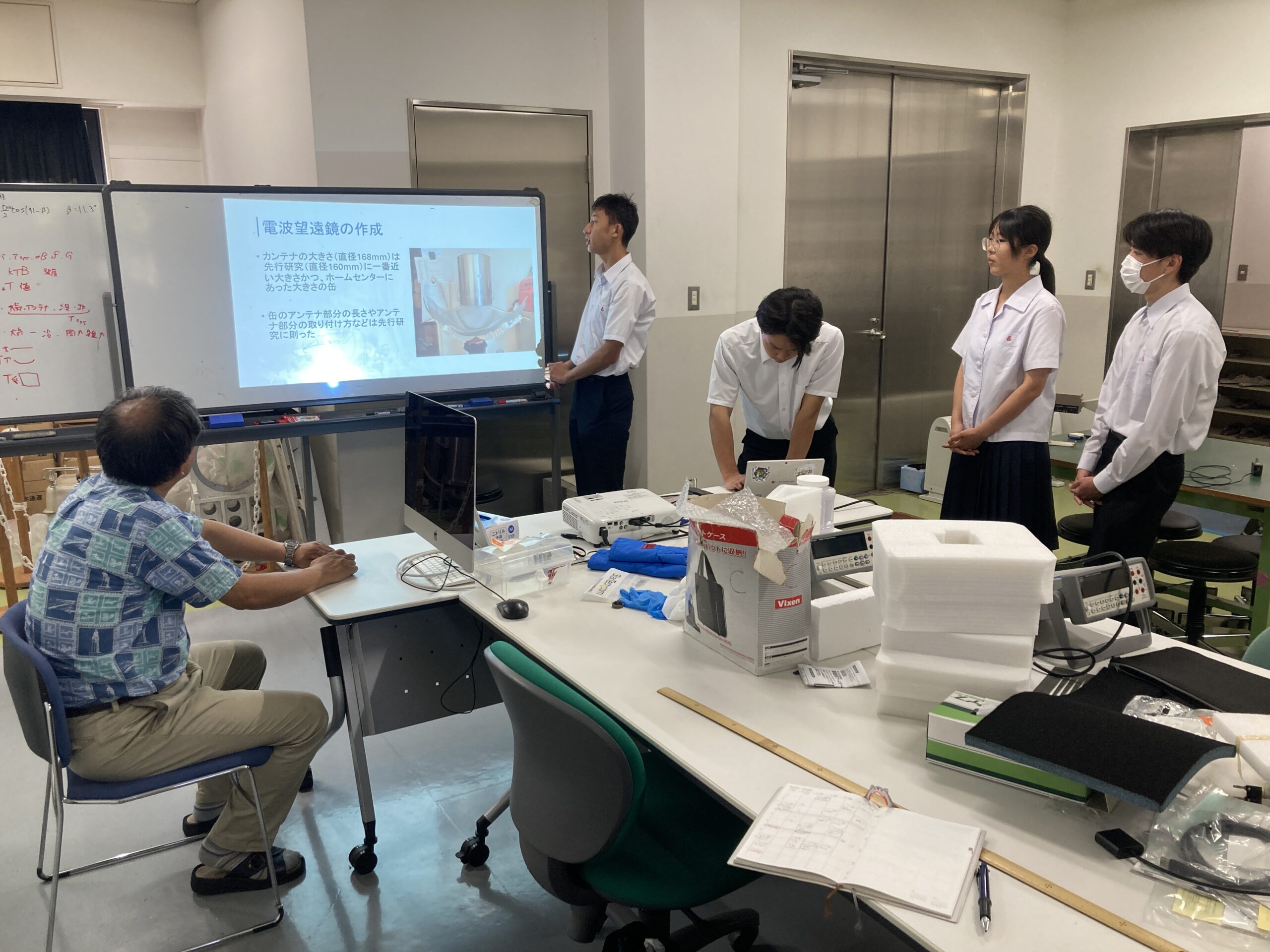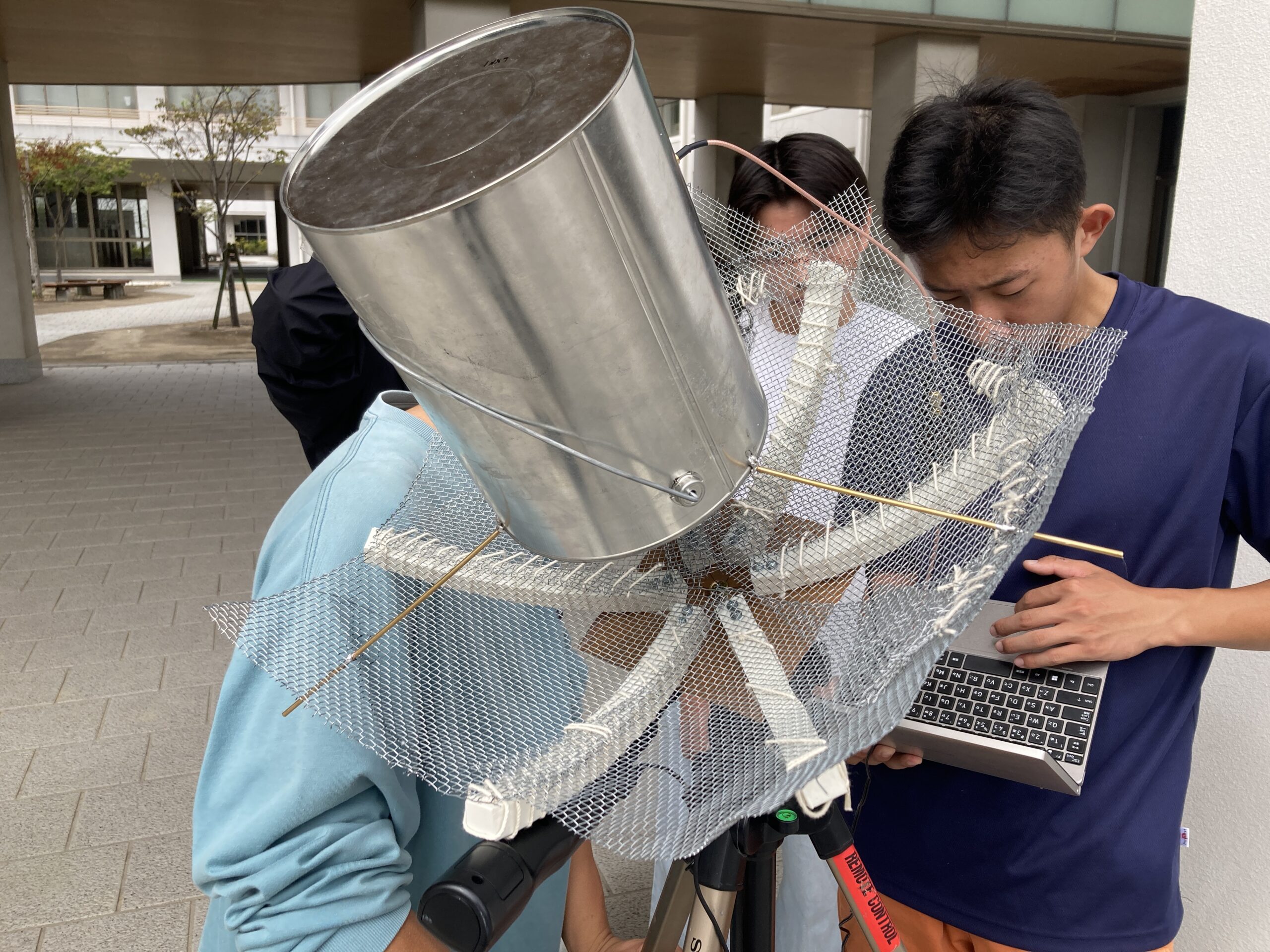 2年国際理学科課題研究の我々のチームは、電波望遠鏡を自作し宇宙に偏在する中性水素からの21cm線の観測を目指して研究に取り組んでいます。