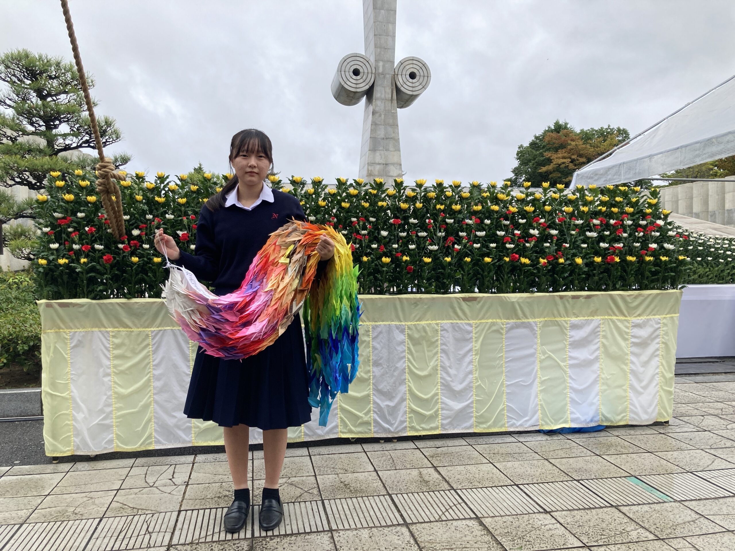 最後に、学校を代表して千羽鶴を献じました。隙間時間を使って鶴を折ってくれた皆さん、ありがとうございました。