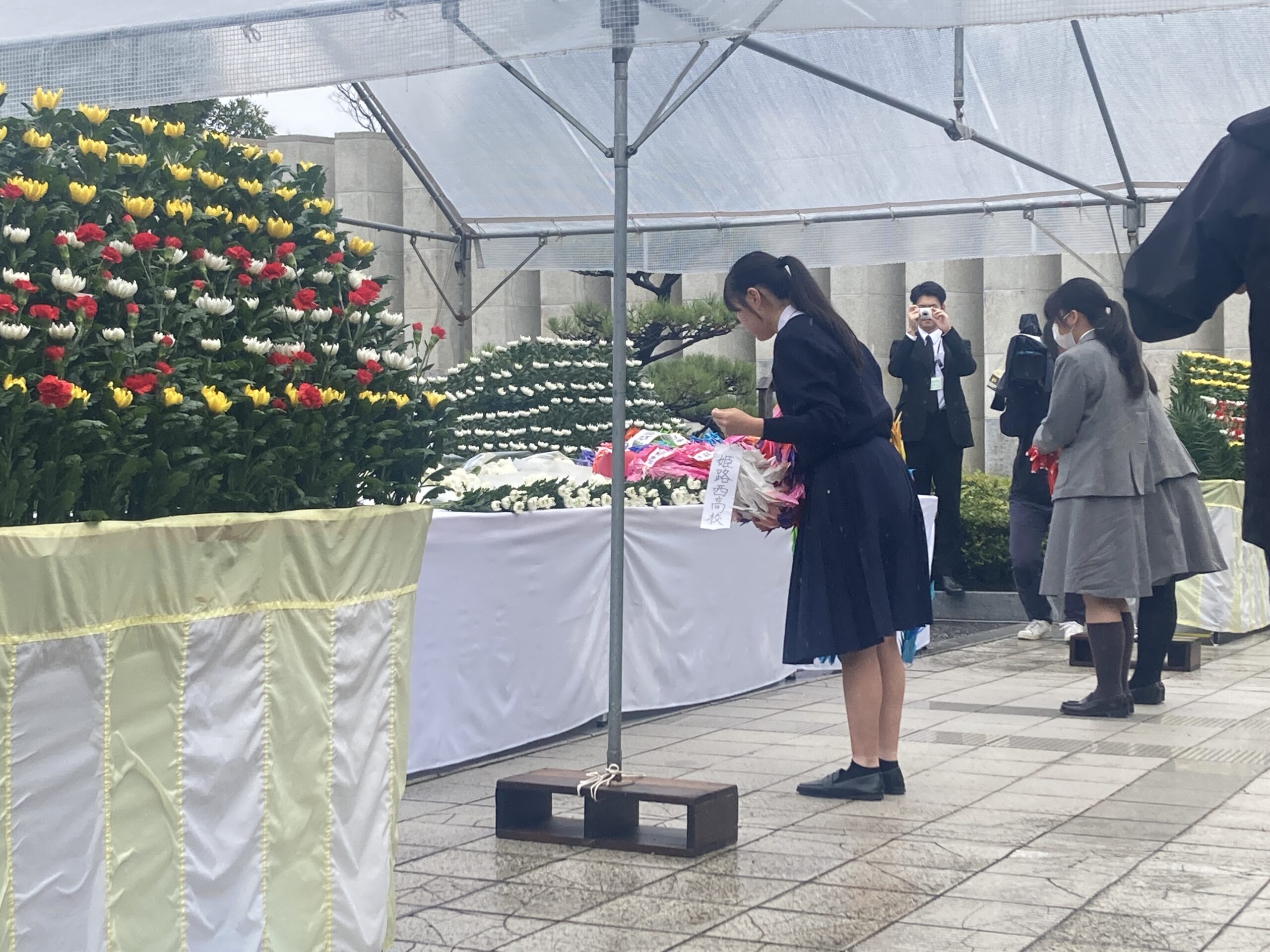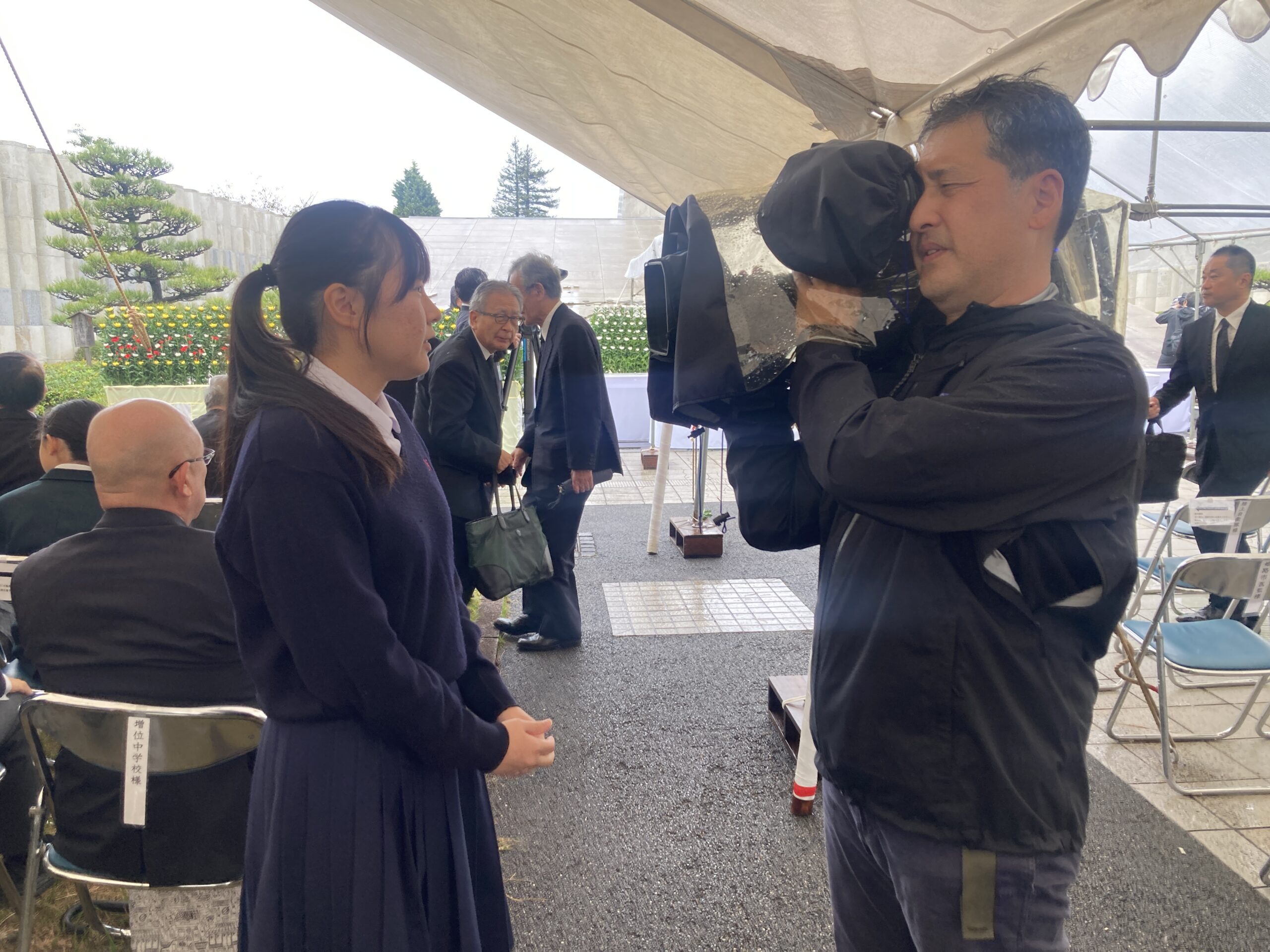 10月26日(日)に姫路市手柄山平和公園で行われた、太平洋戦全国空爆犠牲者追悼平和祈念式に本校生徒1名が参加しました。今年は戦後80年の節目となる年で、戦争を直接経験された方がどんどん少なくなってきており、その伝承が課題であると言われています。空爆によって尊い命を奪われた方の魂の平穏を祈るとともに、決して戦争を起こさせないという思いを新たにしました。