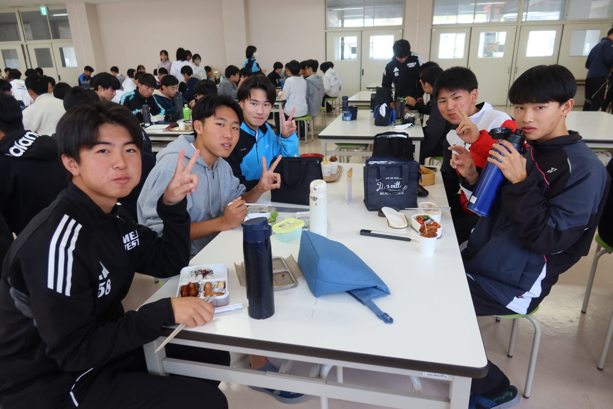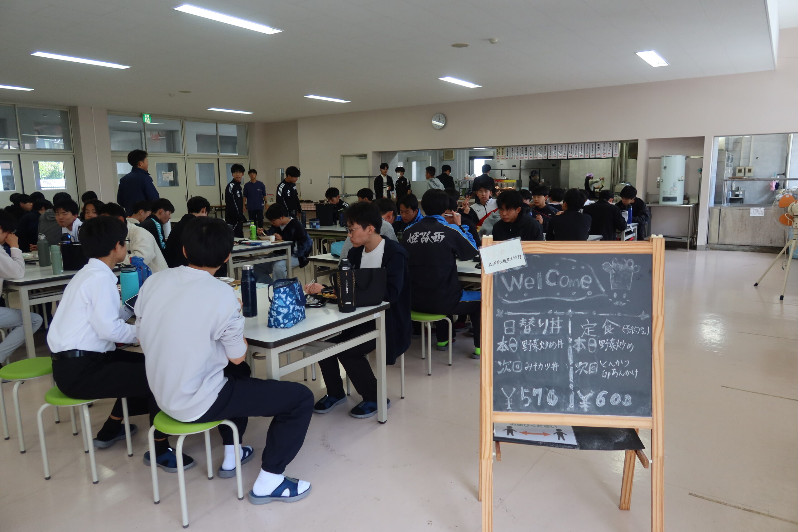 2025年 今日の西高 食堂 食堂 2025_11/06 本日は西高の食堂の様子です。 お弁当と唐揚げを注文して食べている生徒や、カレーや丼ものを注文して食べている生徒など、たくさんの生徒が利用しています。 注文口は混雑するときがあるので、そんな時は予約注文がおすすめです。