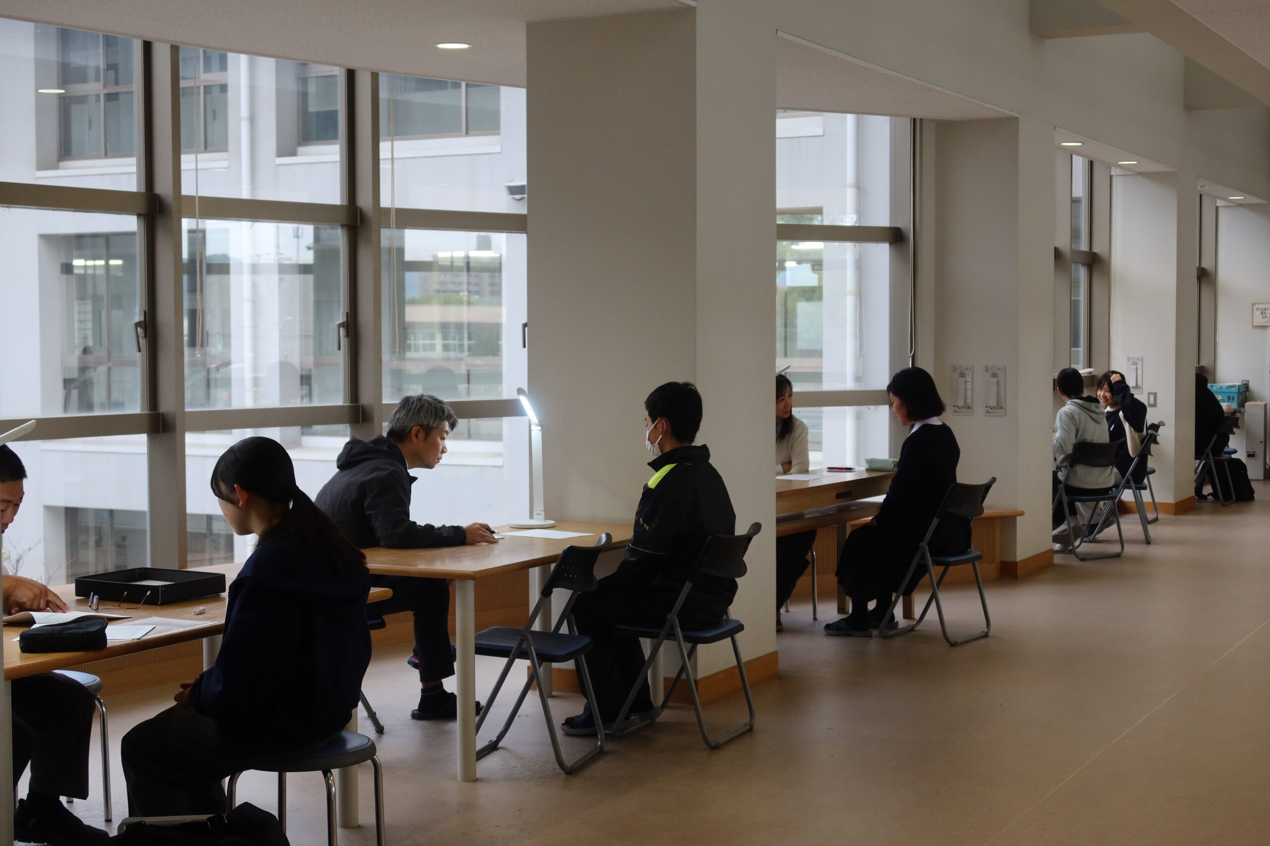 2025年 今日の西高 職員室前自習スペース 職員室前自習スペース 2025_11/07 本日は職員室前の自習スペースの紹介です。 写真は朝の風景ですが、朝早くから多くの生徒が質問や相談に来ています。 そのほかにも黙々と勉強している生徒も多く、朝の時間を有意義に活用している様子がうかがえます。