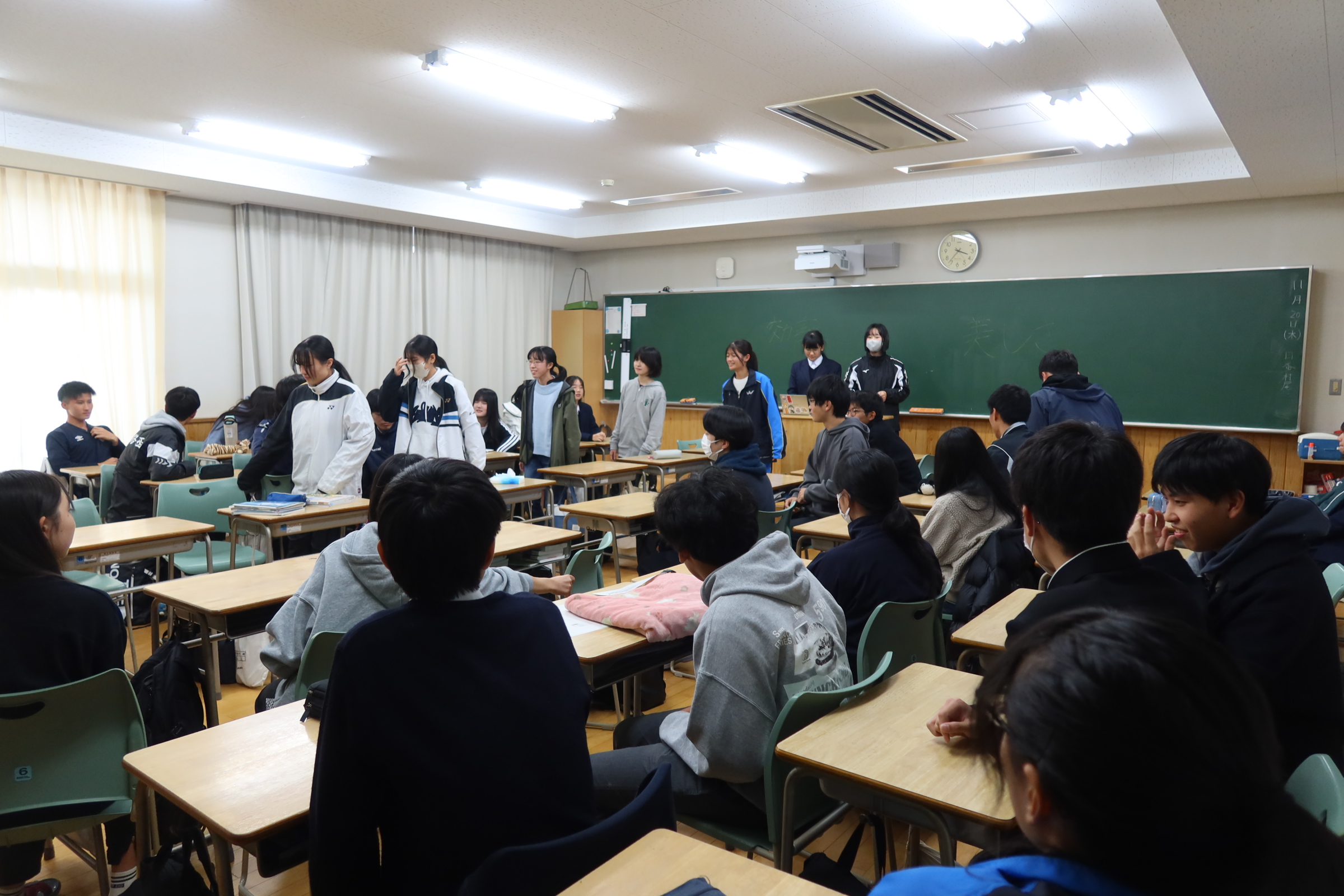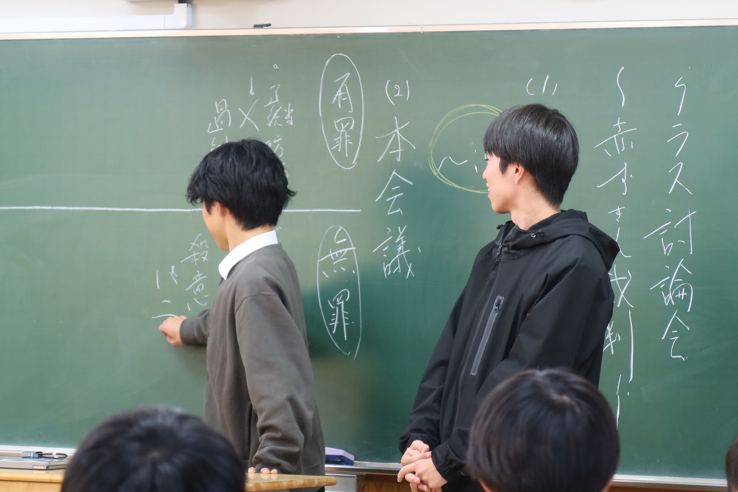 クラスごとに題材を決めて、賛成と反対に分かれて討論を行いました。
