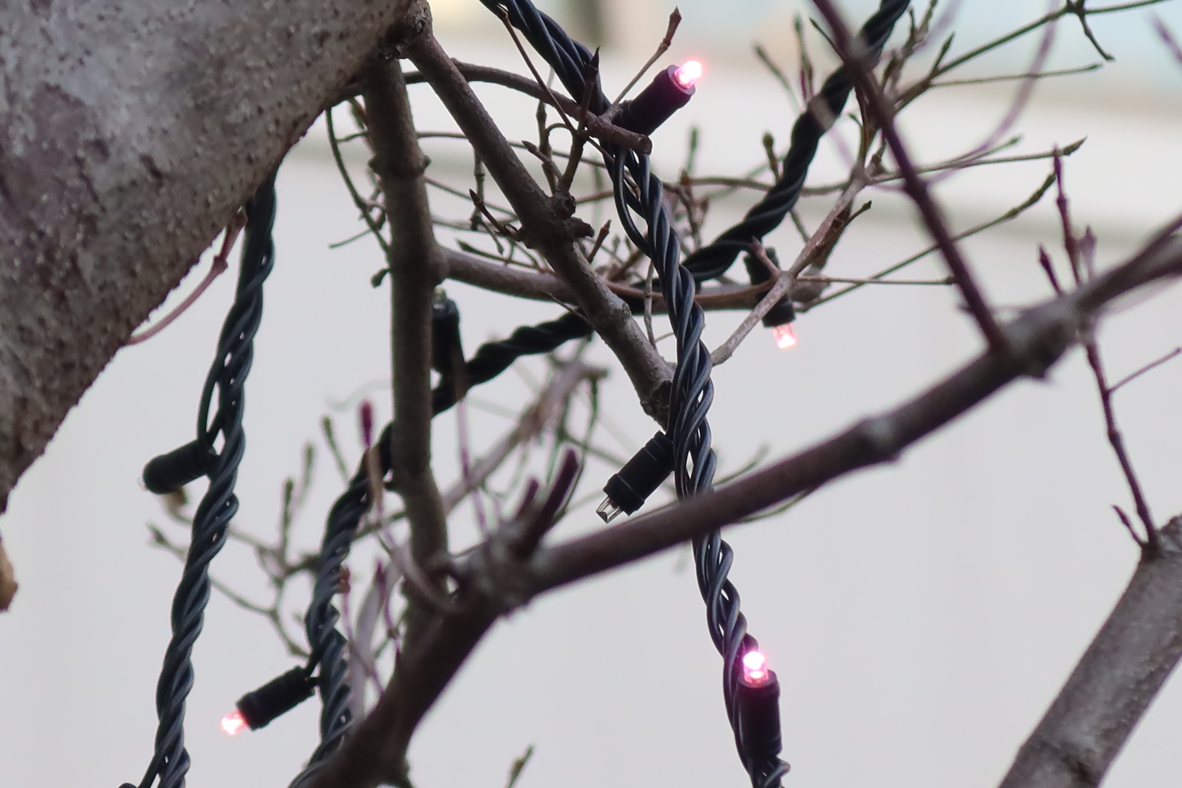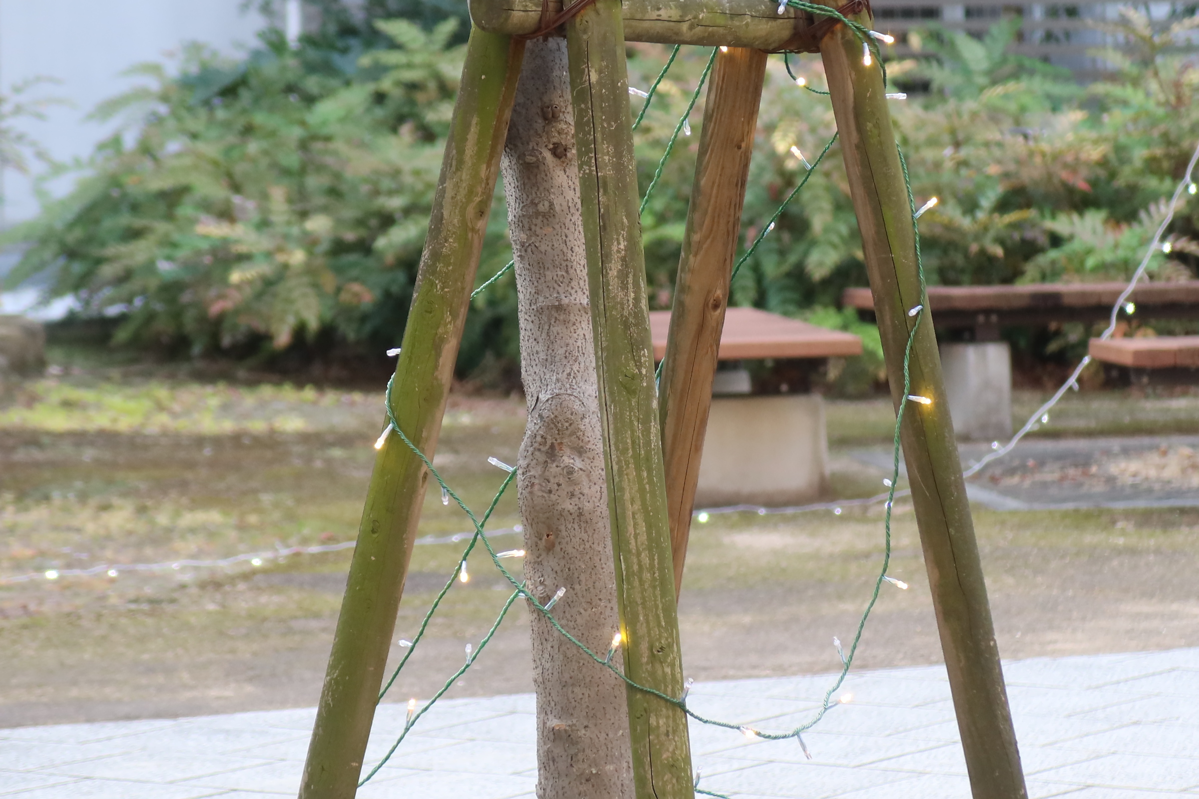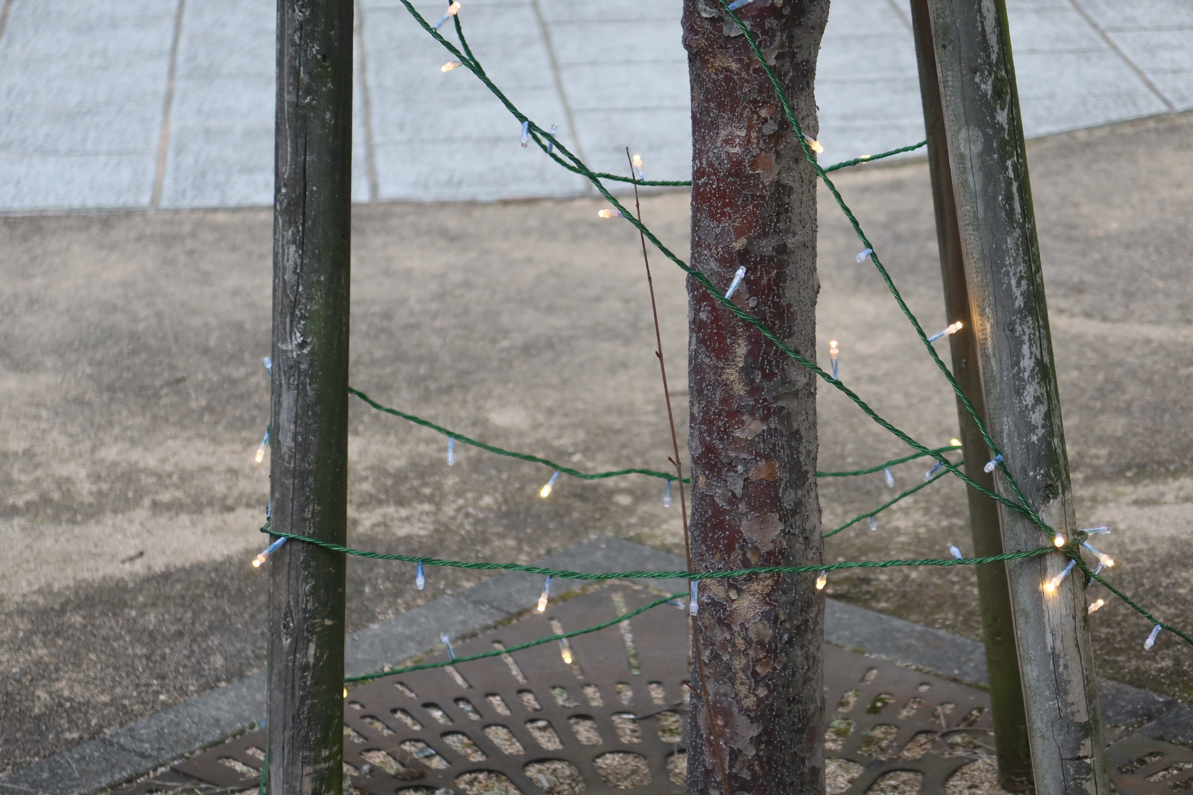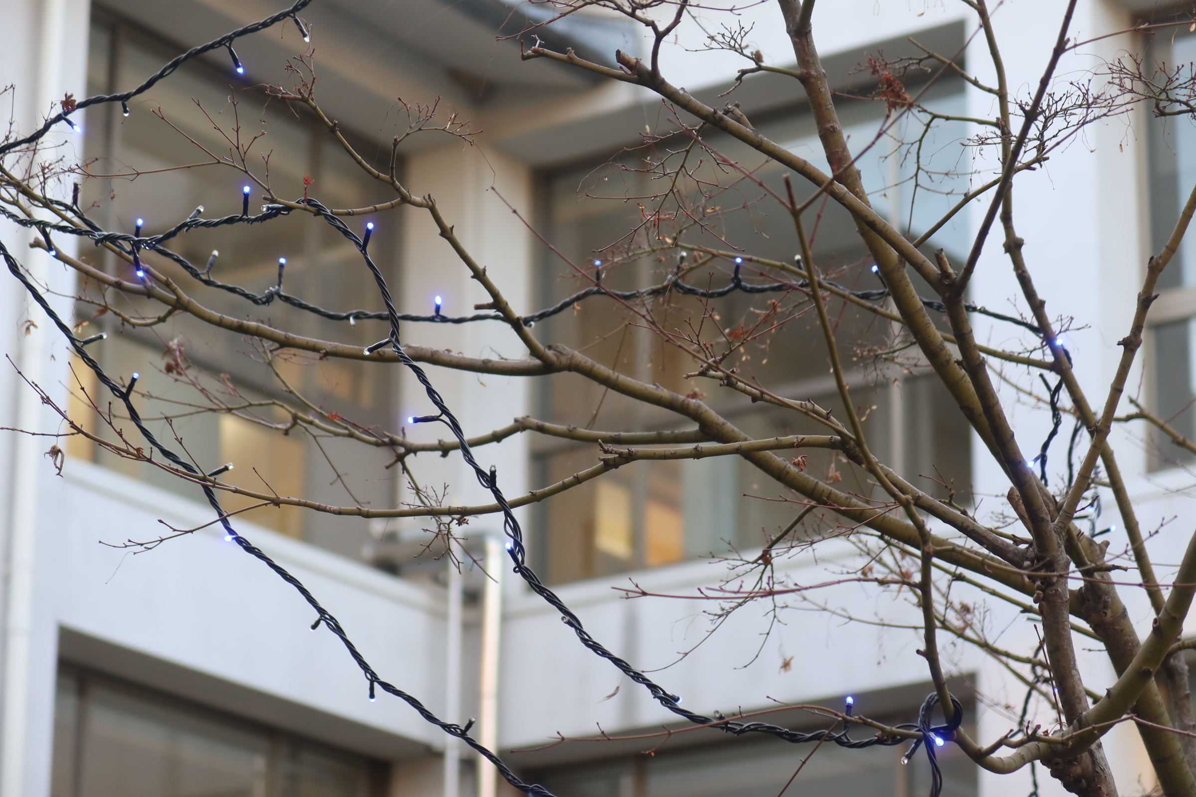 今日は中庭のイルミネーションの紹介です。このイルミネーションも1階コモンスペースのクリスマスツリーと同じで、西高キラキラプロジェクトの一環として生徒会が運営してくれています。