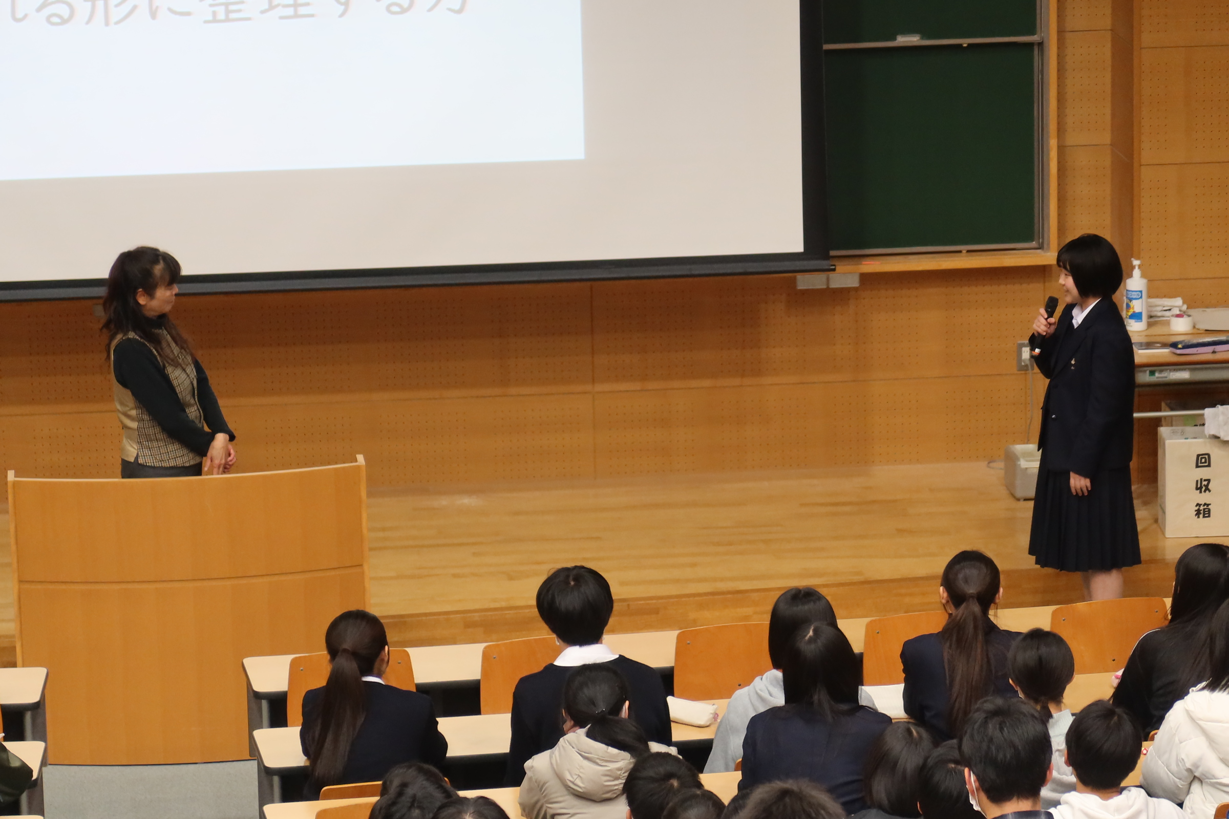 どちらの時間も講座中に生徒が積極的に自分の意見を発表していて、とても活発な様子がうかがえました。講座の最後に生徒会が謝辞を述べました。
