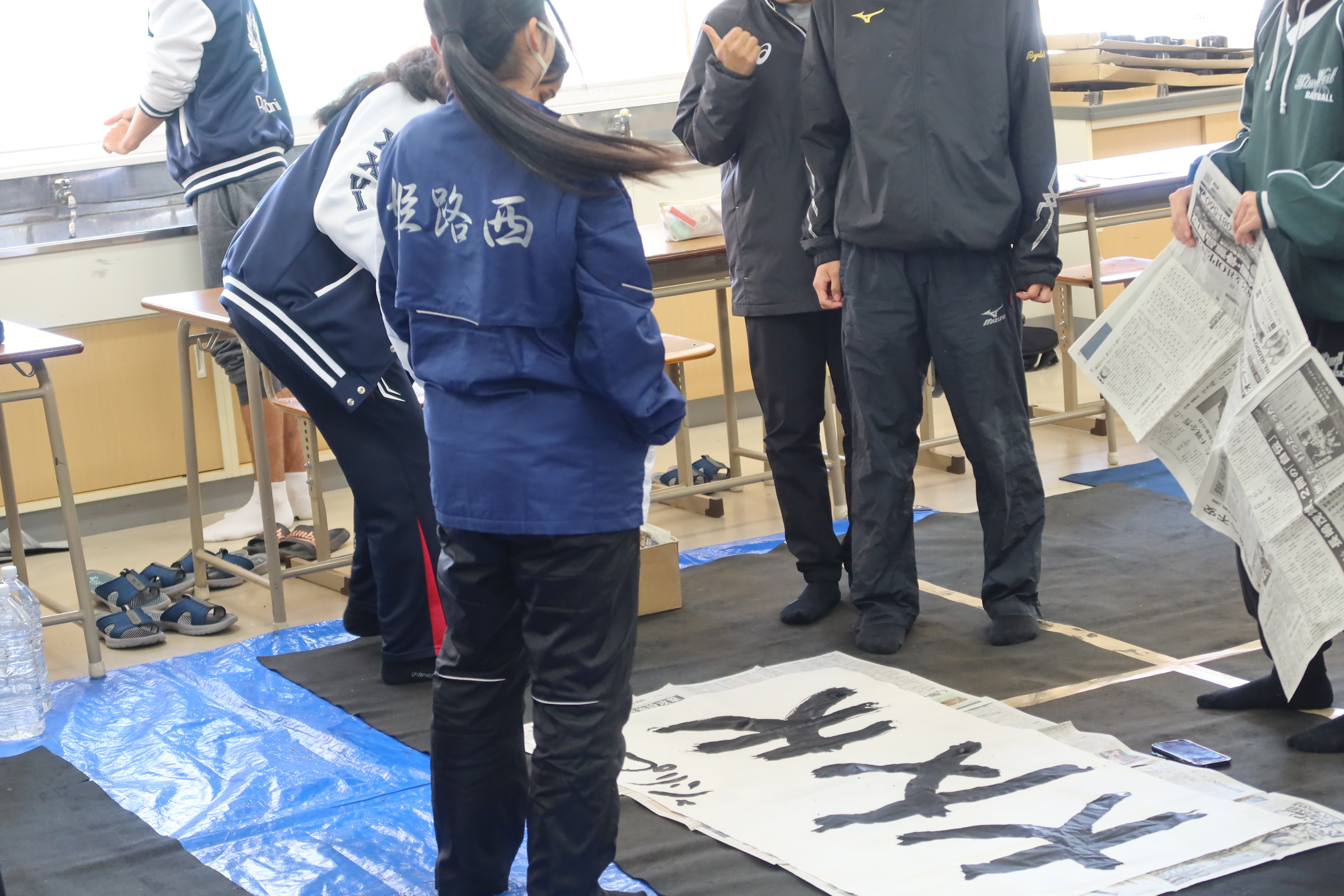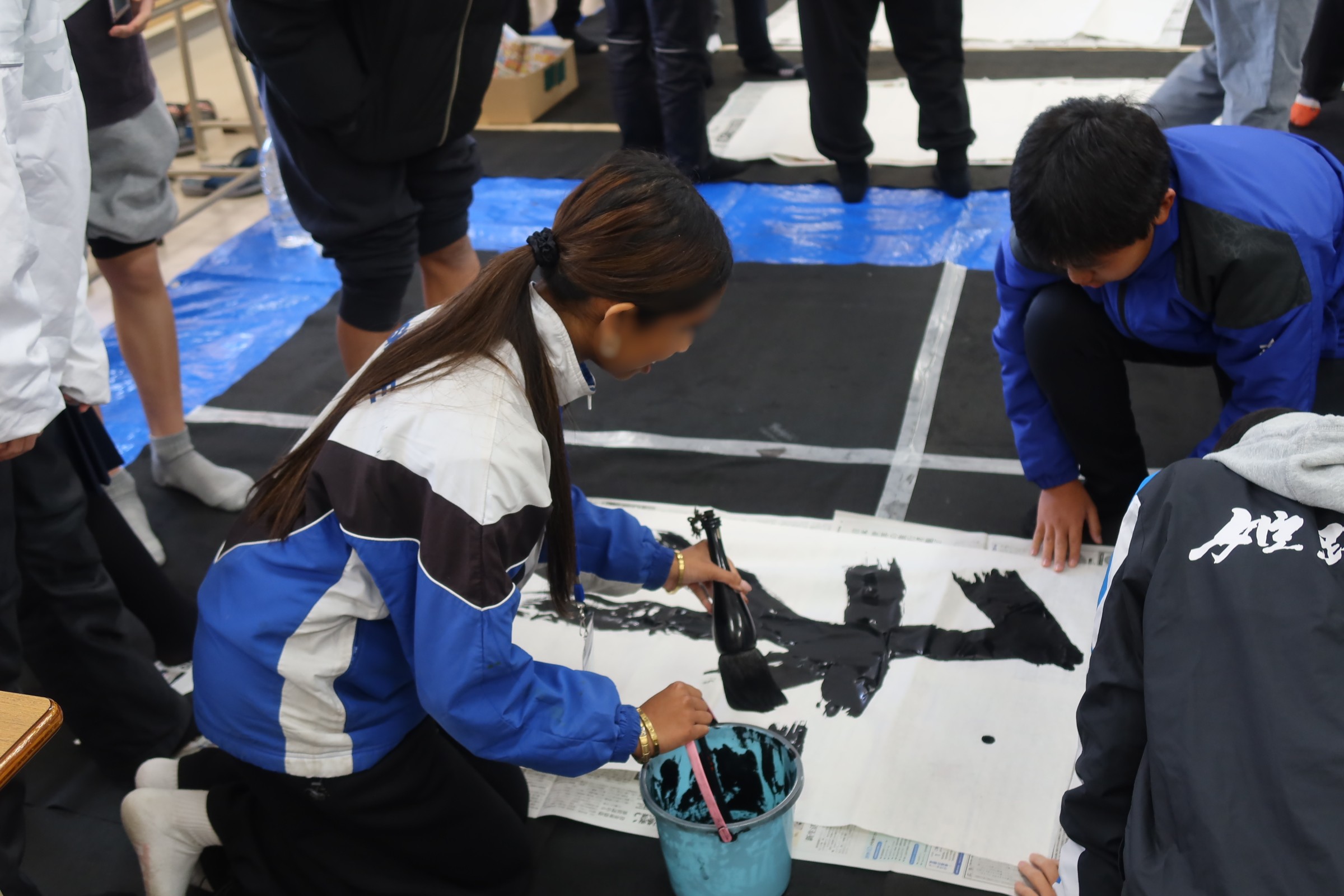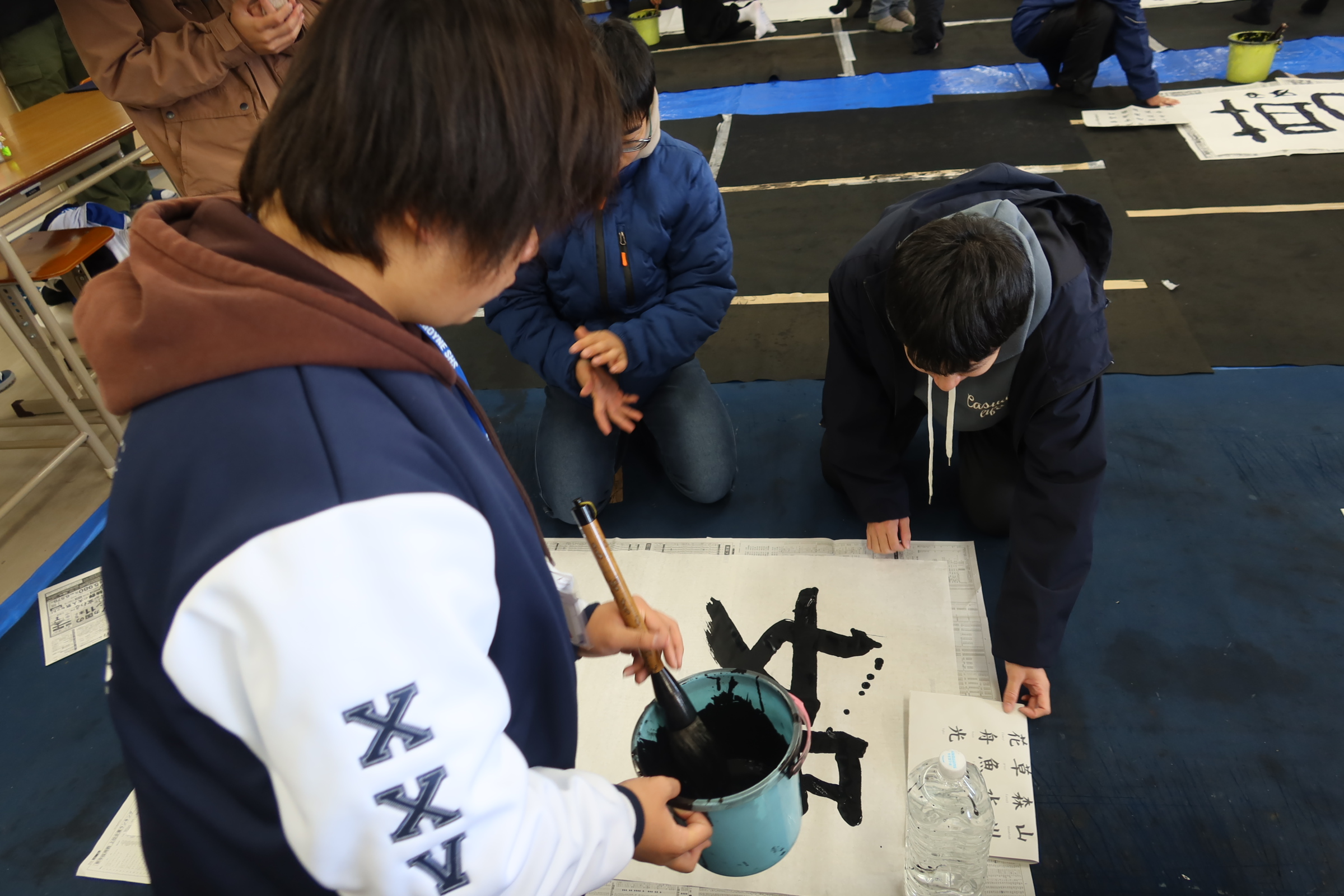 今日はロスモイン生が本校生徒と一緒に書道体験をしている様子です。