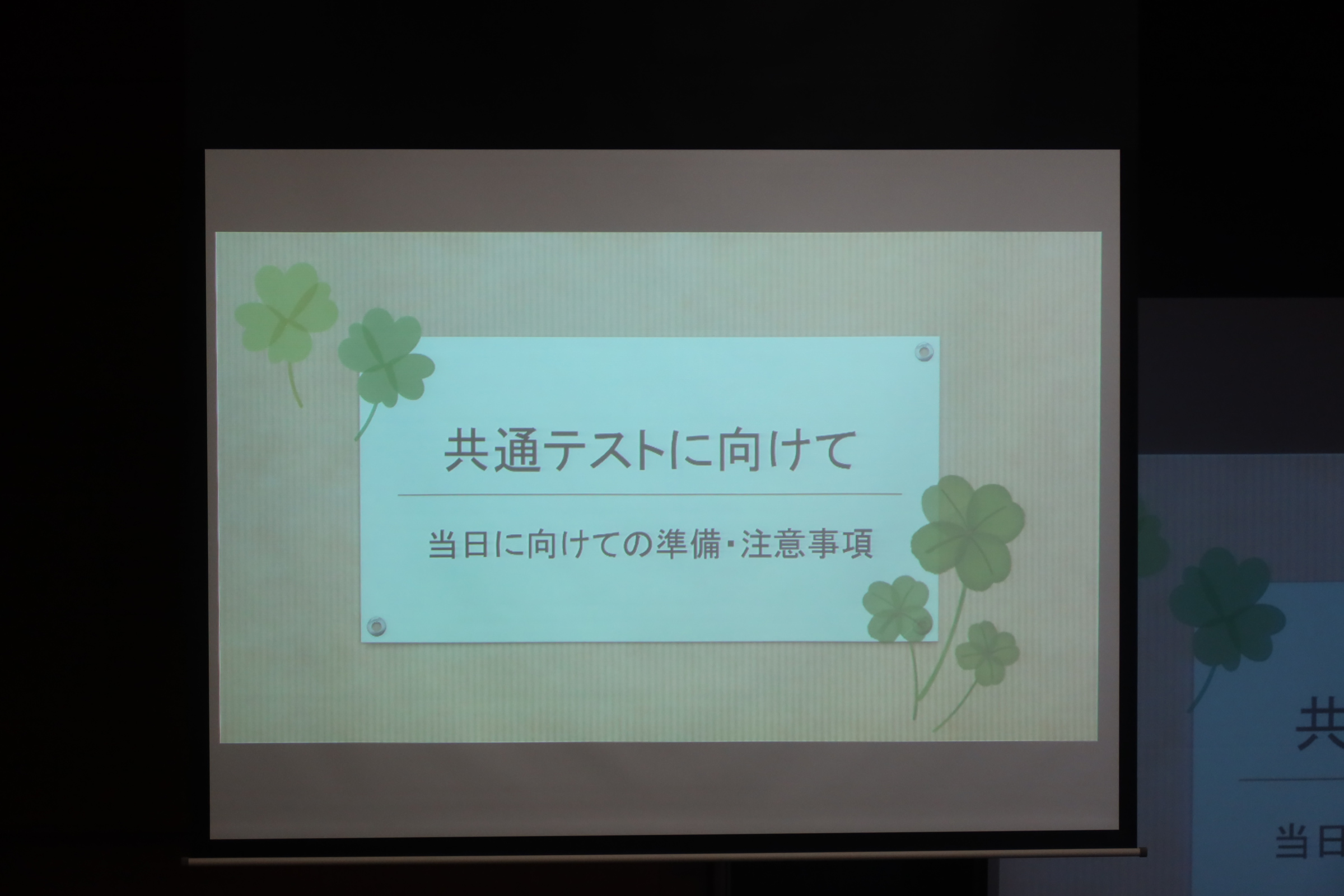 初めに校長先生や学年主任の先生から、共通テストを受ける上での心構えについて話を受けました。