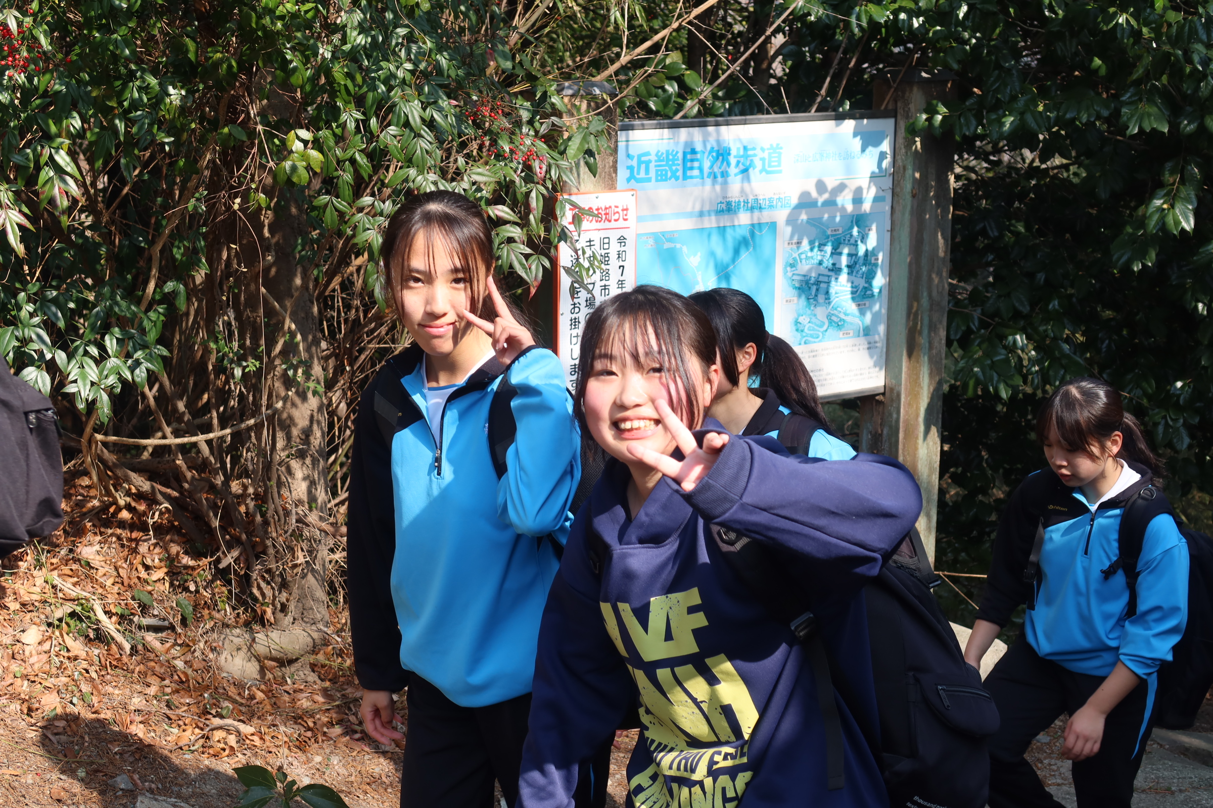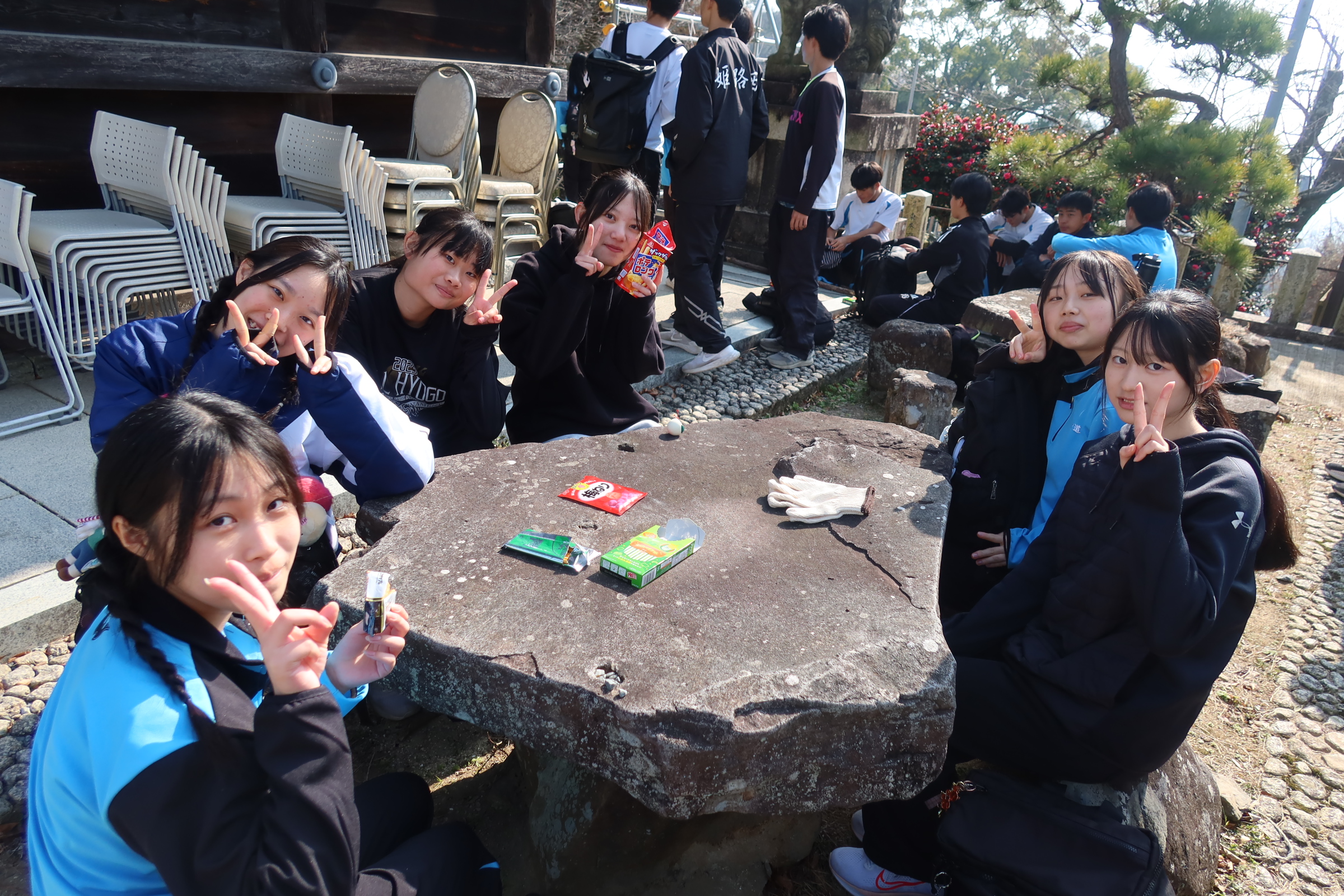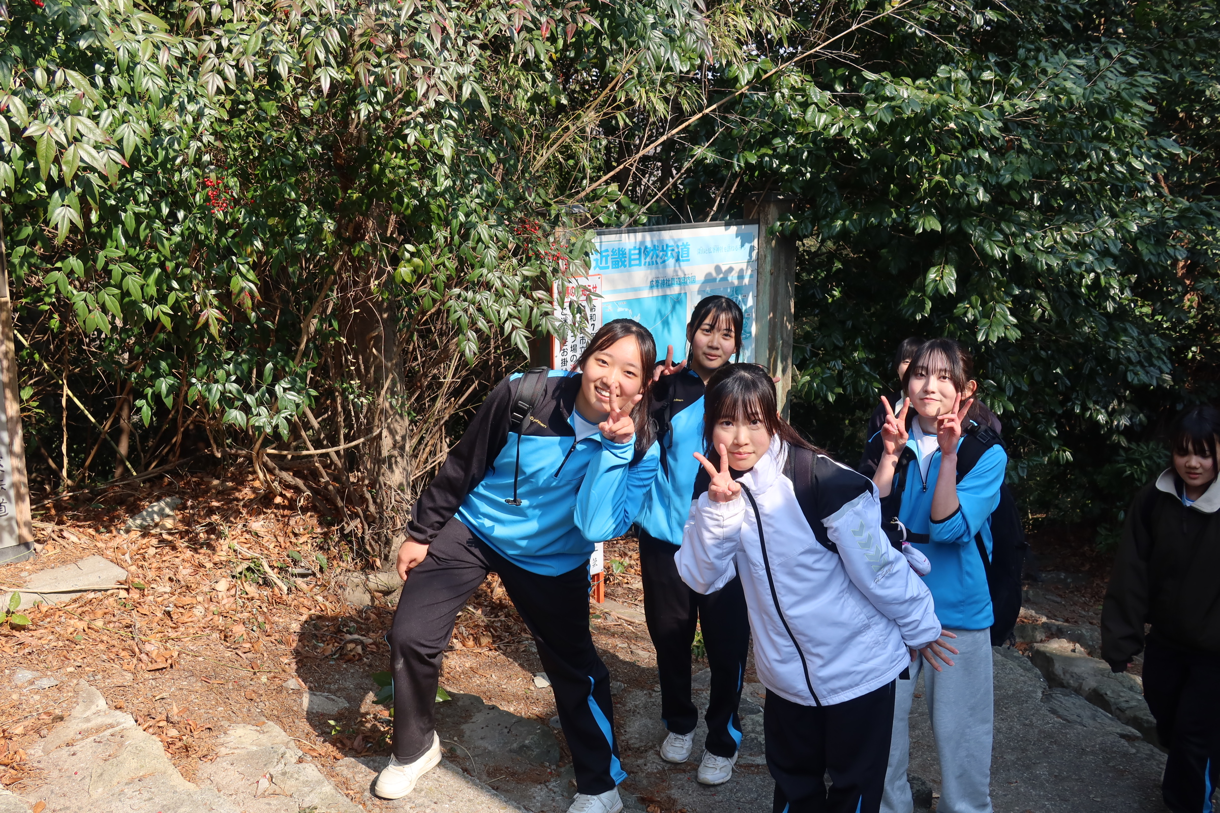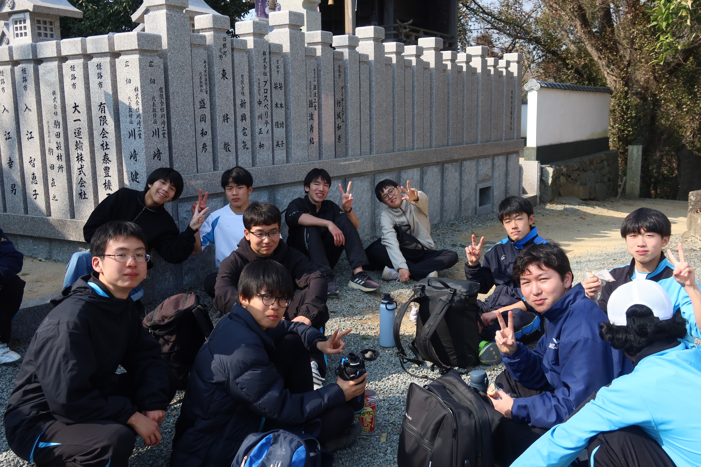 耐寒登山では1時間目に学校を出発し、随願寺から広峰神社を通過して昼過ぎに学校に帰ってきました。増位山と広峰山の自然に親しみながらの仲間との登山は連帯感が深まったと思います。随願寺から広峰神社でとったの休憩では、生徒は軽食を食べたりおみくじを引いたりと疲れている中でも楽しそうな様子でした。