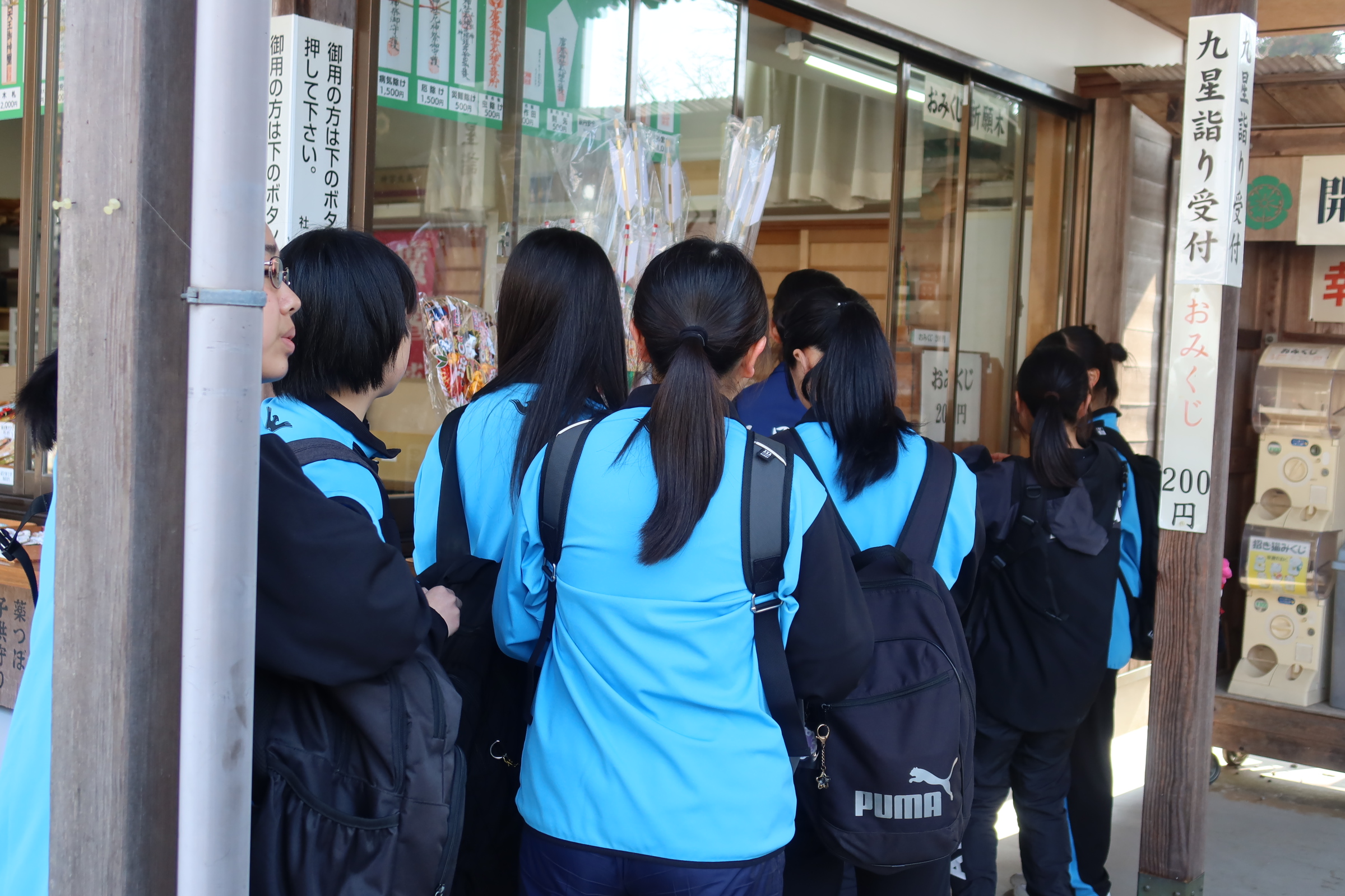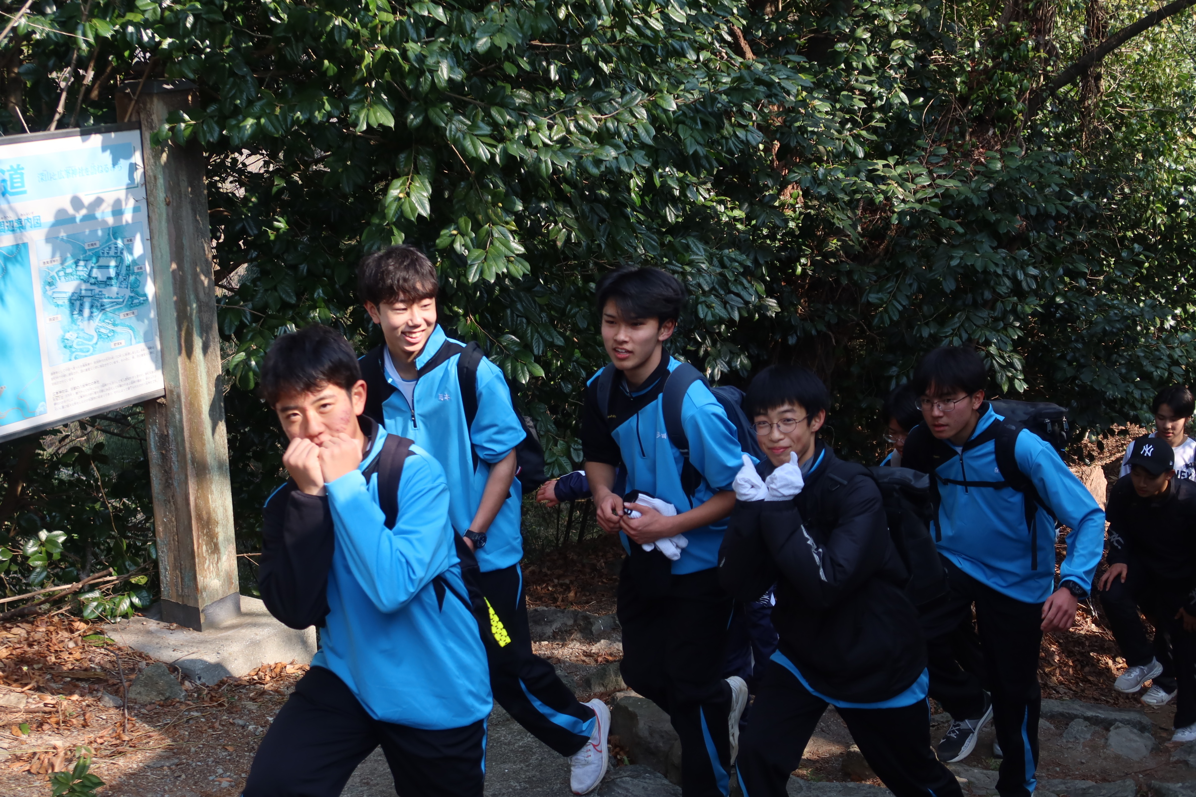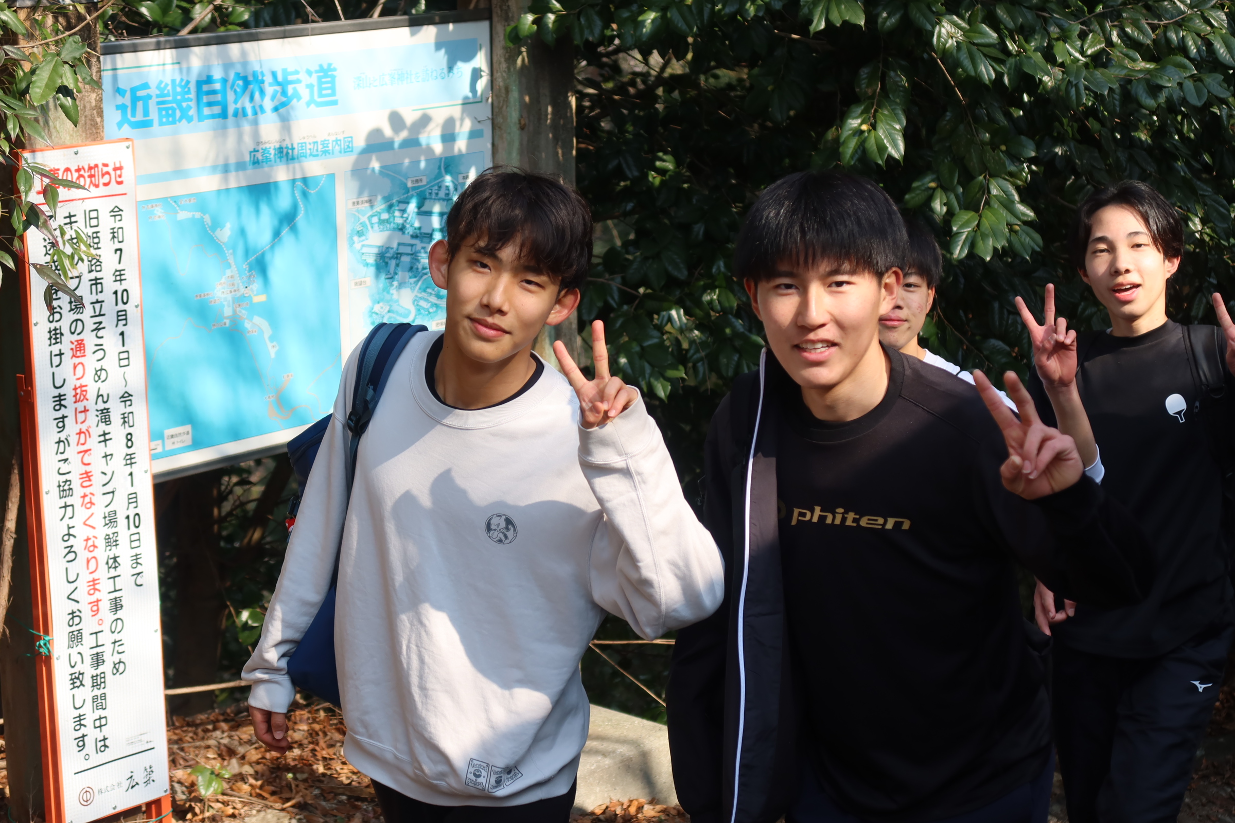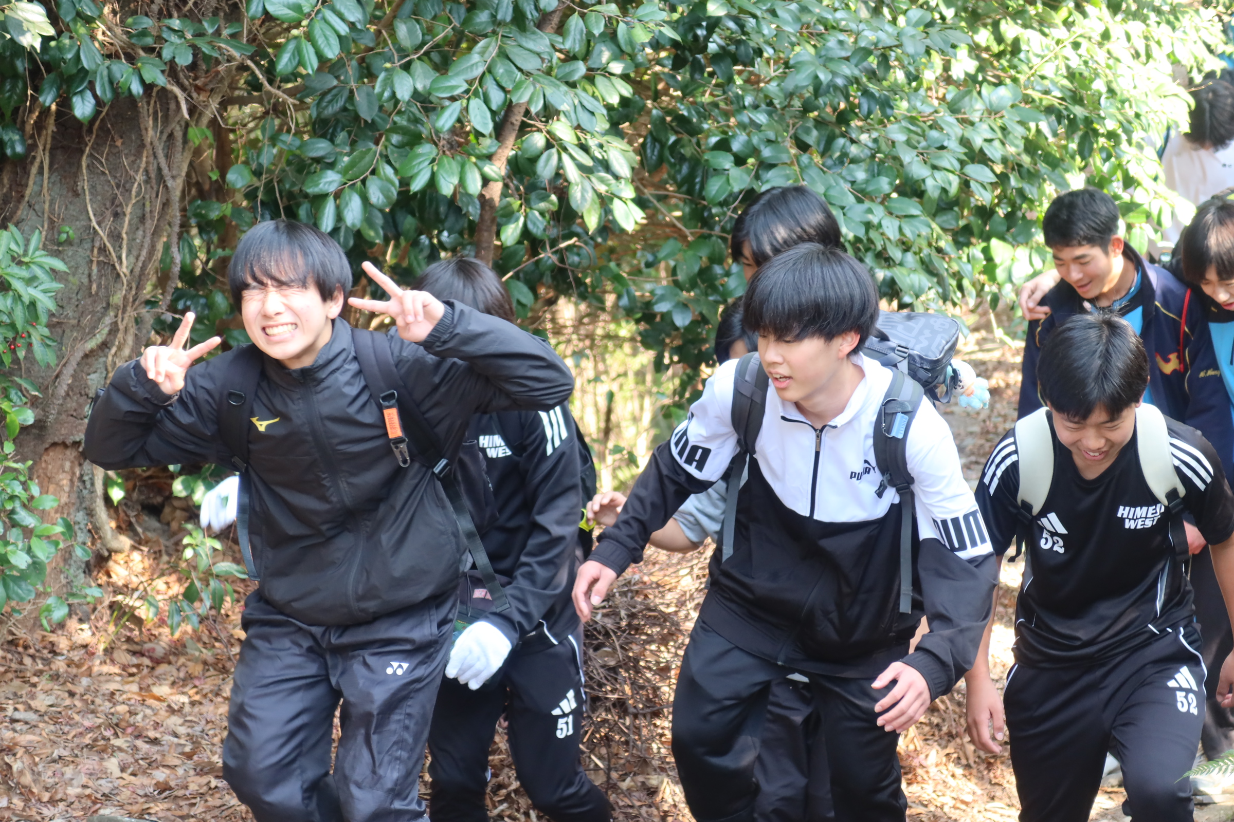 耐寒登山では1時間目に学校を出発し、随願寺から広峰神社を通過して昼過ぎに学校に帰ってきました。増位山と広峰山の自然に親しみながらの仲間との登山は連帯感が深まったと思います。随願寺から広峰神社でとったの休憩では、生徒は軽食を食べたりおみくじを引いたりと疲れている中でも楽しそうな様子でした。