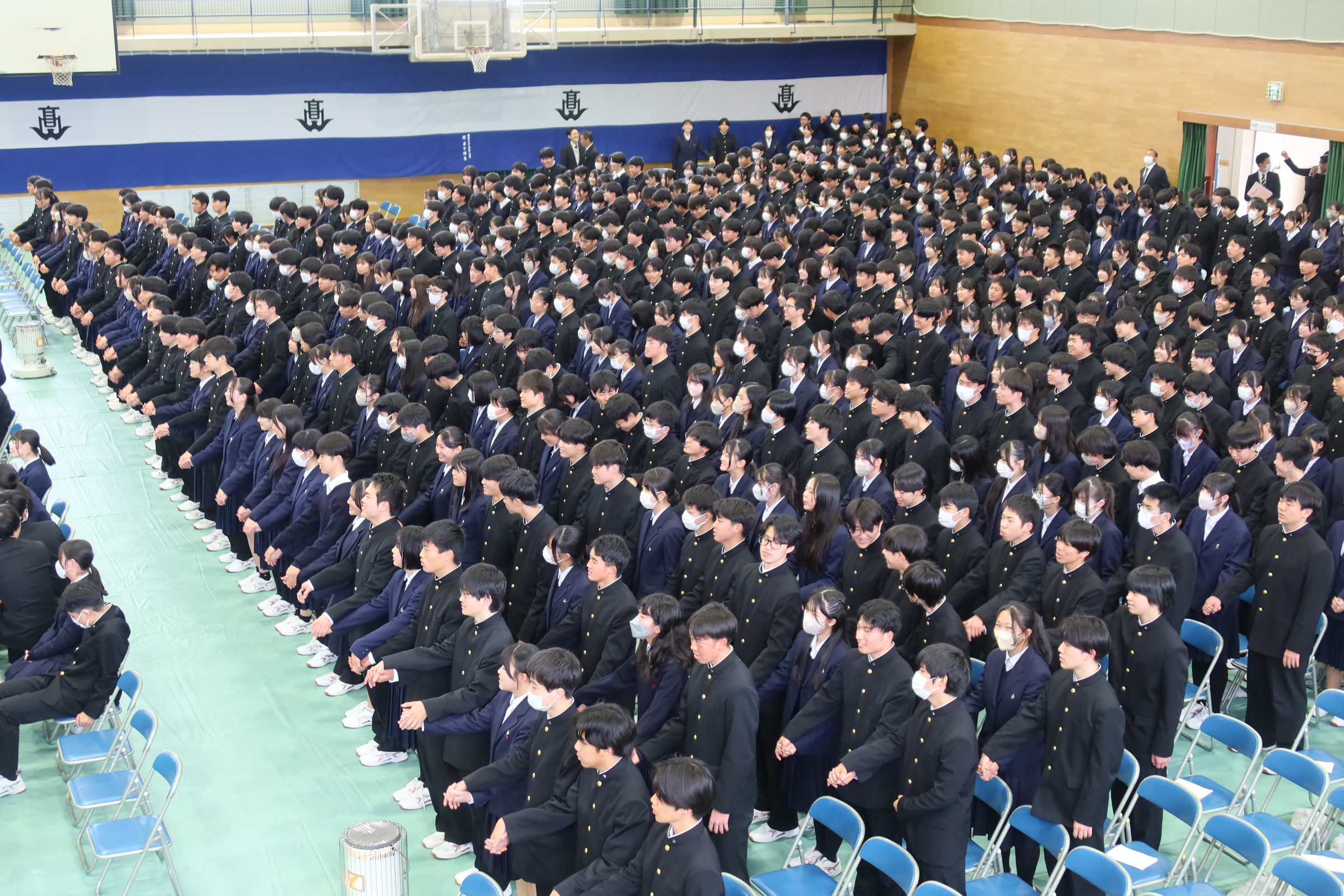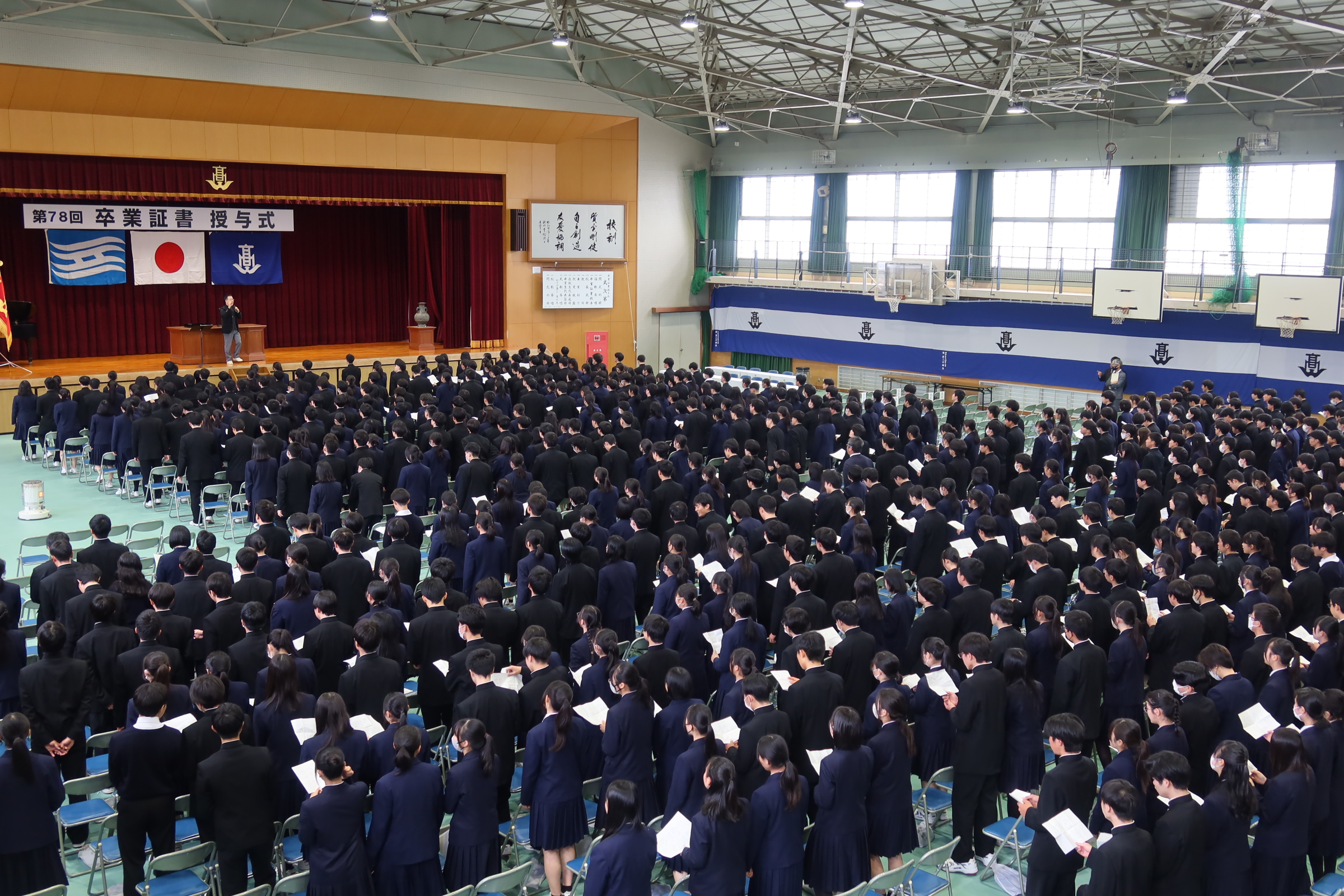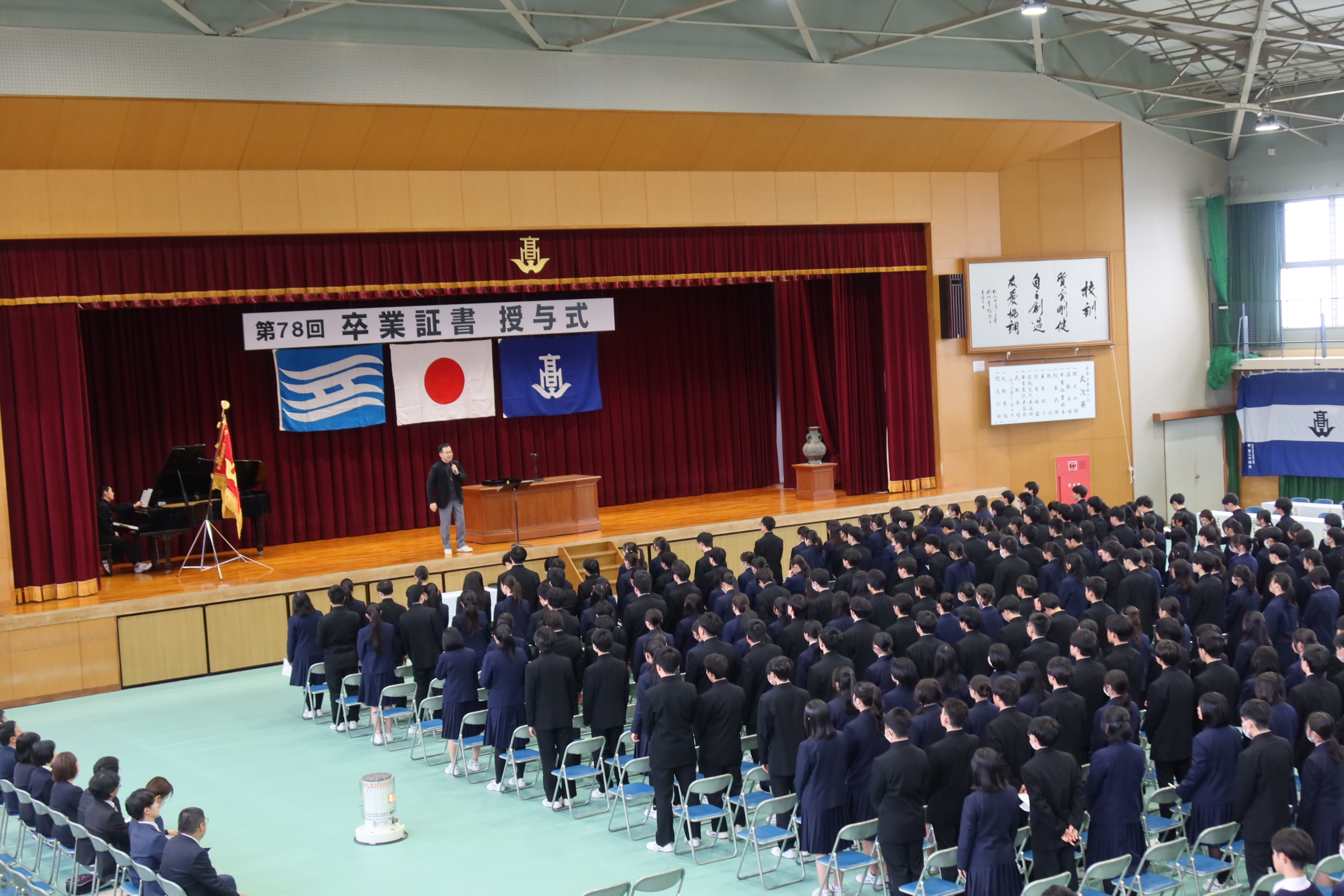 その後に明日の卒業式で歌う式歌を、卒業生と在校生がそろって一生懸命練習しました。