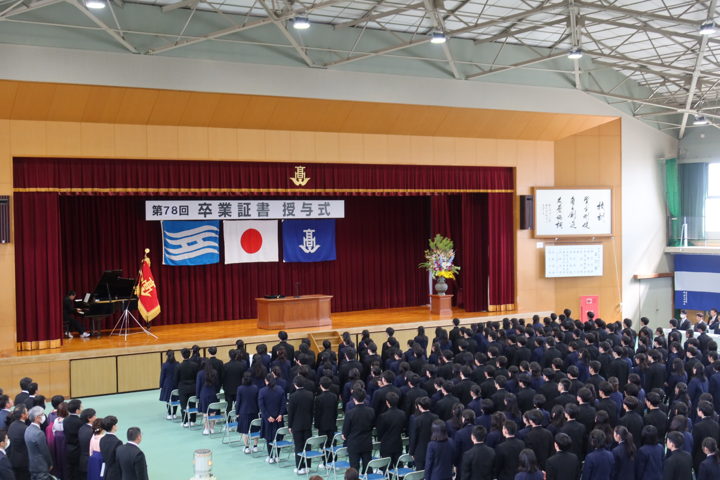 本日体育館で卒業証書授与式が行われました。