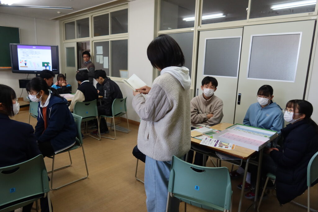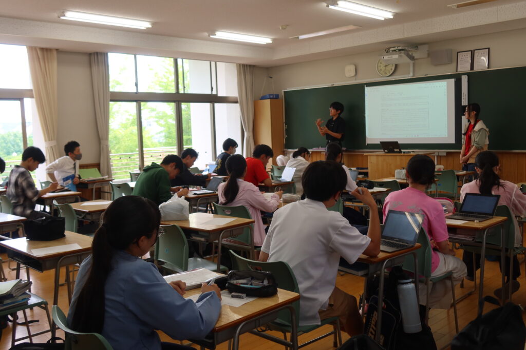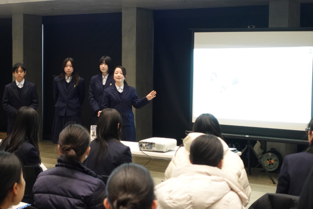国際理学科では、普段の授業や探究活動でグループワークを行い、自分の意見やグループの意見をまとめて発表する場面が多くあります。