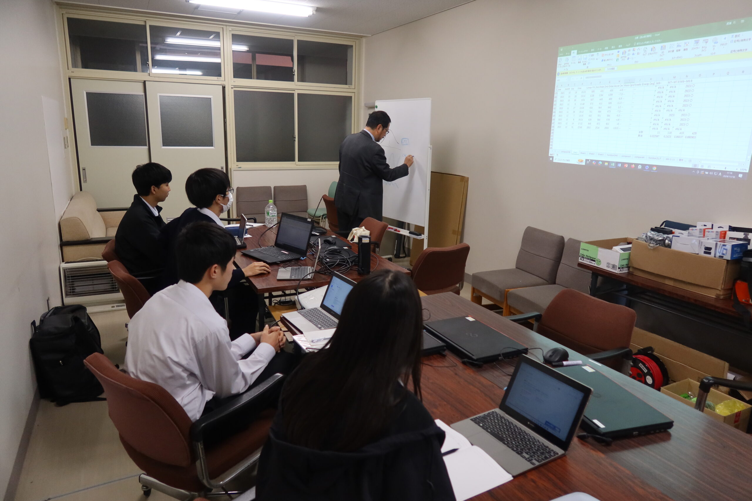 - 本校卒業生の京都大学生による研究の助言指導に加え、京都大学の教員の前で研究発表を行う京都大学研修
