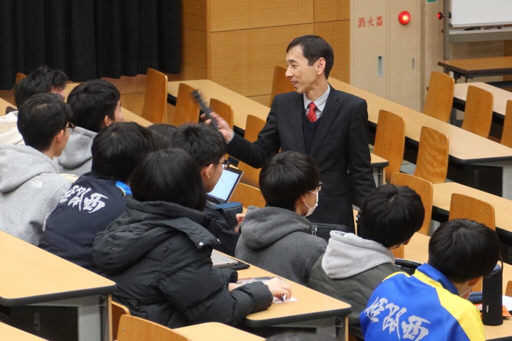 国際理学科の代表生徒は、2月に行われるSSH成果発表会で英語によるプレゼンテーション発表があります。近隣のALTを招き、英語による質疑応答も行われ、「生きた英語力」を発揮することができます。また、コロナ禍を経て発展したweb会議システム等を活用して、海外の高校生との合同研究発表会を行います。