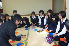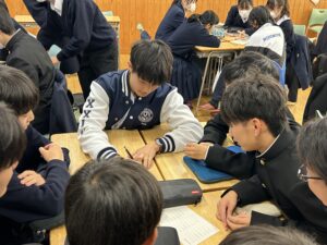 オーストラリア研修で訪問したロスモイン高校から生徒が来校しました。ロスモイン高の生徒は1週間にわたって本校に滞在し、文化の違いに戸惑いながらも、積極的に授業に参加しました。英語の授業はほとんどを特別授業に変更し、ロスモイン高校生との交流学習としました。日本の高校生言葉を英語に直したり、日番・部活動など日本の学校生活の特徴を英語で紹介したりするなど、英語を使いながらお互いの文化的差異を学びつつ、交流を深めました。