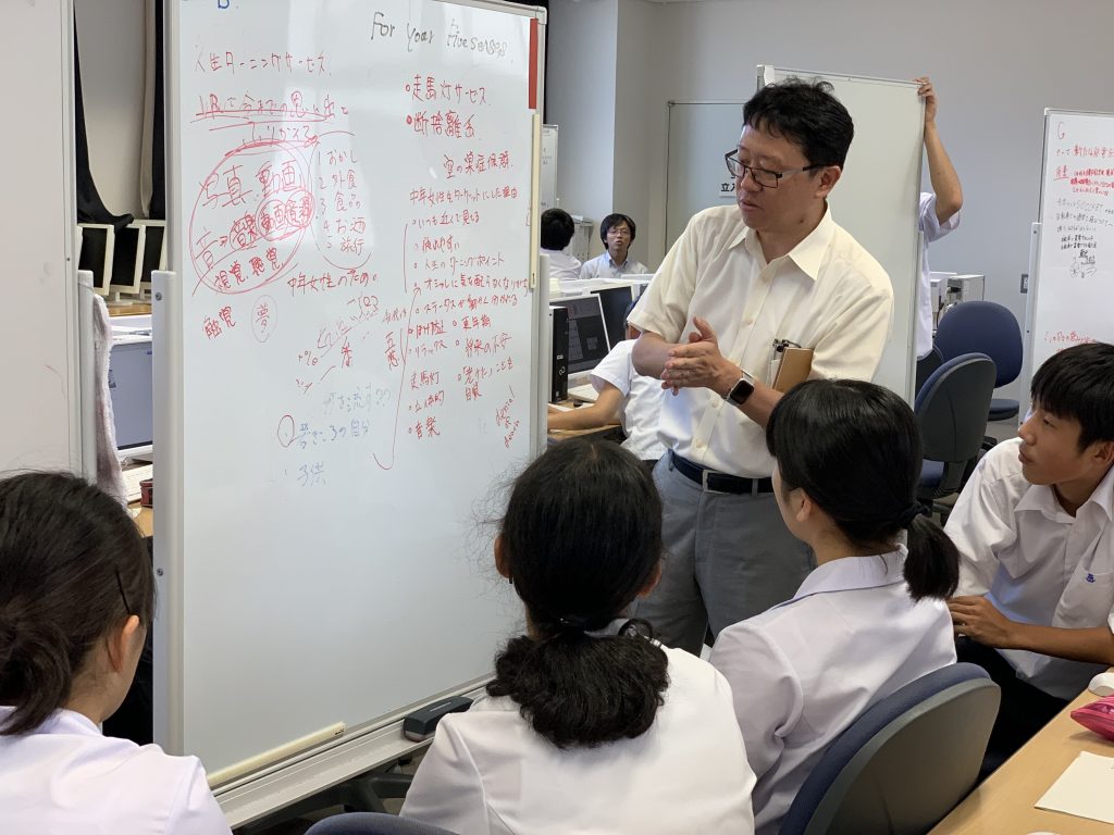 英語での発表会も多くあり、自然と英語を活用することになります。それぞれの発表では、英語担当の教員の綿密な指導、ネイティブ教員による個別指導、そして、大学教授の指導により、高度な英語発表となるための指導や講義があります。