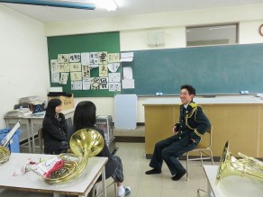 2016年12月20日兵庫県警察音楽隊によるコンサートを開催しました。あわせて薬物乱用防止講話を行っていただくという一石二鳥の企画です。コンサート中には警察官の仕事についての紹介もしていただきました。さらにコンサート後には、希望者を対象にさらに詳しく説明をしていただき、さらにさらに、吹奏楽部の生徒と各楽器ごとに分かれて交流会まで行っていただき、最高に充実した内容でした。まず演奏では、予想通り、力強く美しい演奏に圧倒されました。その演奏をさらに盛り上げるカラーガード隊・ホップスのみなさんの演技も素晴らしいものでした。演奏の途中で話をしていただいた薬物乱用防止講話は、とても心に響く内容で、その中で歌われた「僕が生まれた時のこと」という歌に感動しました。そして、最後には本校吹奏楽部の生徒との合同演奏です。映画「君の名は。」の主題歌「前前前世」と、野球の応援で知られている「アフリカンシンフォニー」を演奏しました。すごい迫力でした。しばらく感動で言葉が出ませんでした。警察音楽隊の方には、最初から最後まで本当によくしていただいて感謝の言葉しかありません。北条高校全体に元気が漲ったコンサートでした。また、ホップスには3月まで本校の卒業生の方が所属されていたということで、こんなすごい世界を自分たちの身近に感じることができたコンサートでした。
