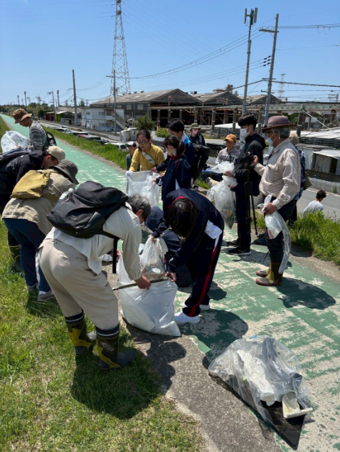 加古川の河口に干潟があり、地域のボランティア団体の方たちとともにビーチクリーンをしました。春の潮風が気持ちよかったです!
