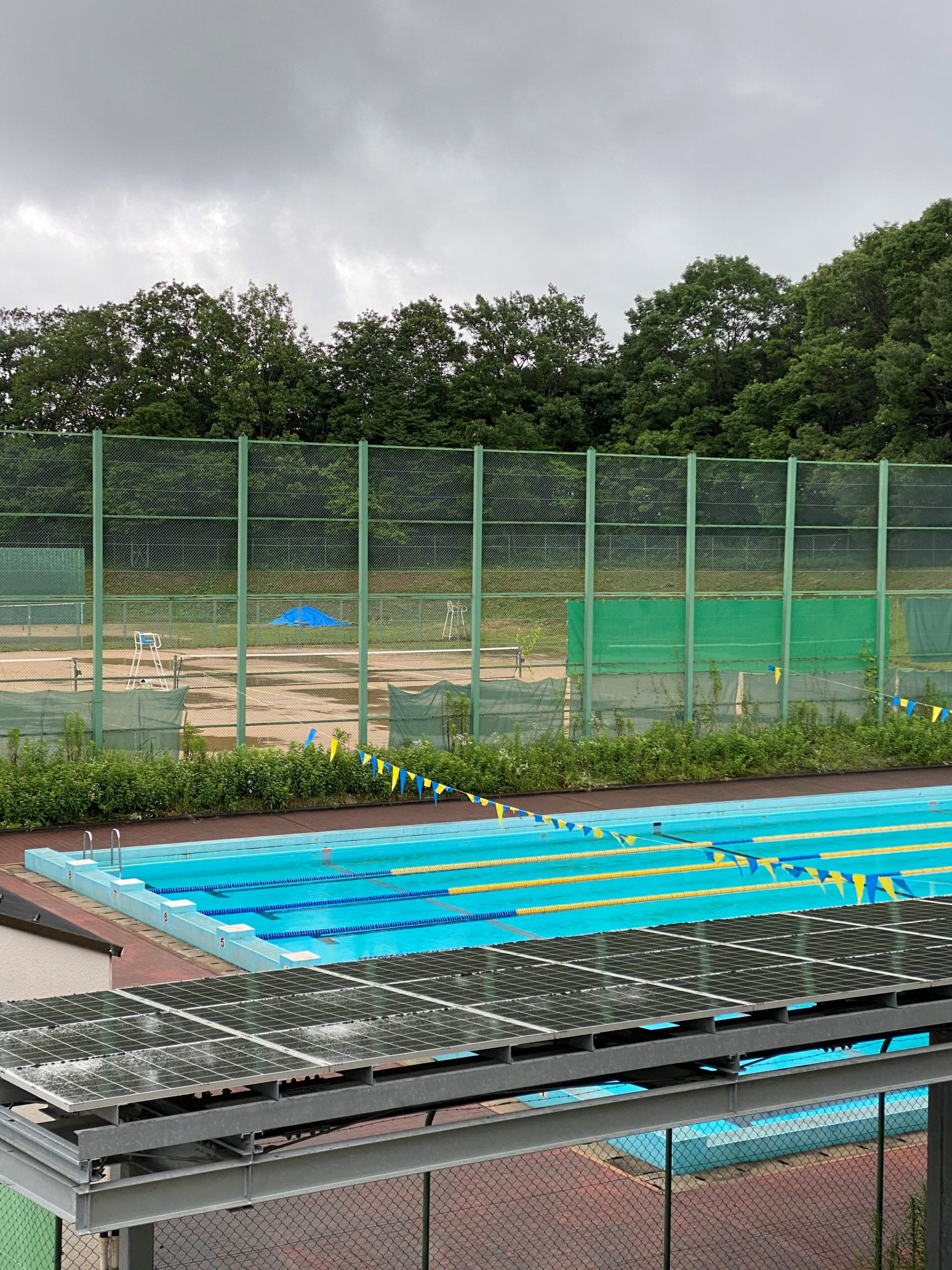 プールとテニスコート