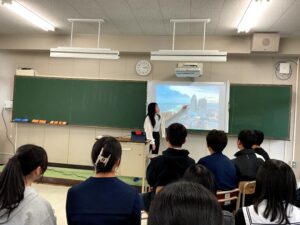 12月に予定されているASIA STUDY TOURに向け、事前研修を実施しました。今回は神戸北高校よりALTのリヴァ先生をお招きし、セブ島で使われている言語や食文化、現地で役立つ旅行情報などを教えていただきました。参加した生徒たちは、非常に熱心な姿勢で取り組んでいました。異文化への理解を深める貴重な機会となり、笑顔の絶えない楽しい研修となりました。