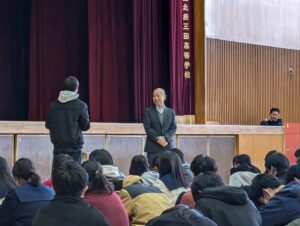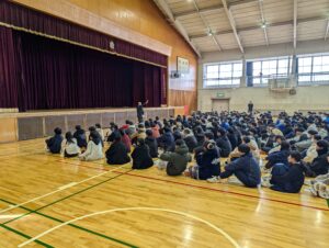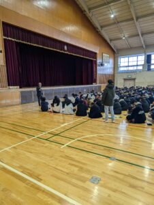 寒い中ではありましたが、質疑応答の時間では質問者が多く、時間切れになってしまうほど生徒たちは積極的に講演を聞いていました。