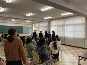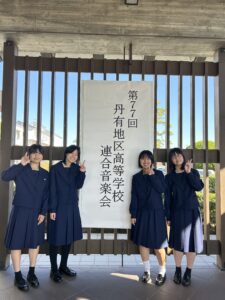 まずは、11月16日(日)に丹有地区高校学校連合音楽会に参加し、信長貴富作曲の「初心の歌」と「ジグザグな屋根の下で」を演奏しました。
